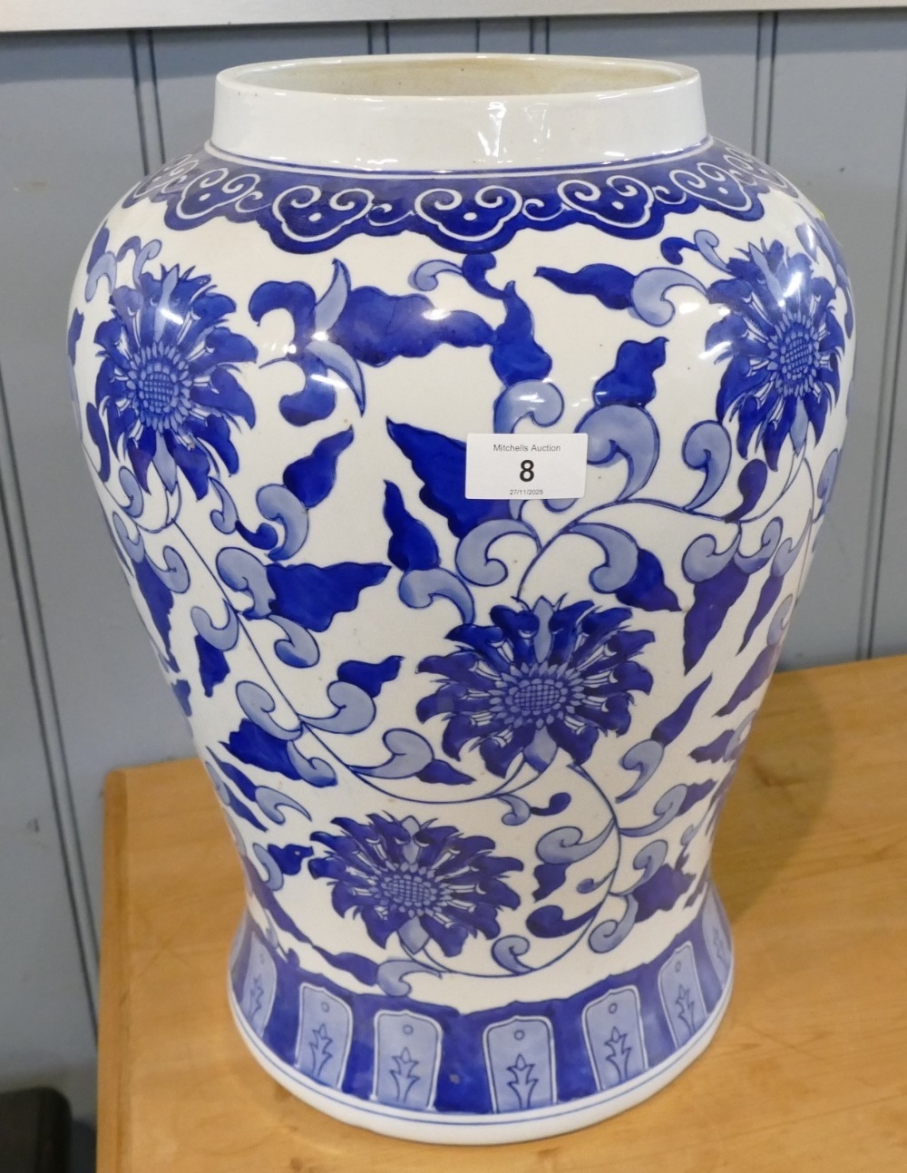 Asian style blue and white vase, 43 cm high