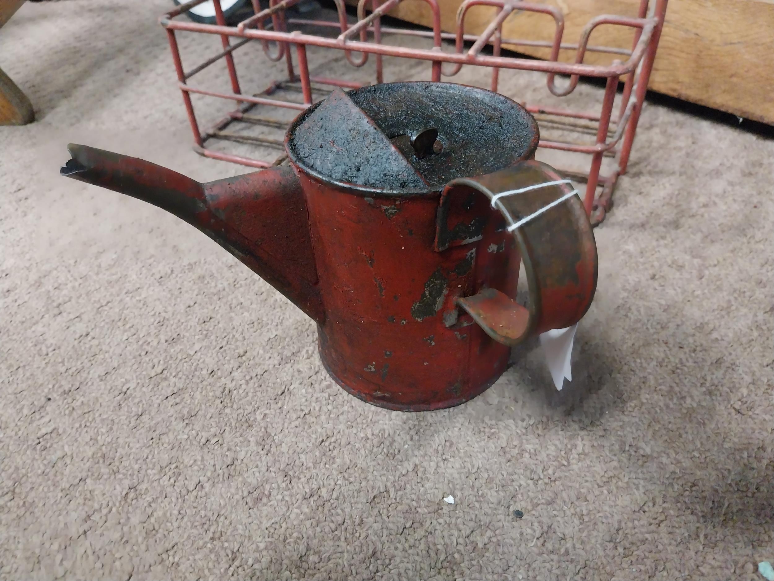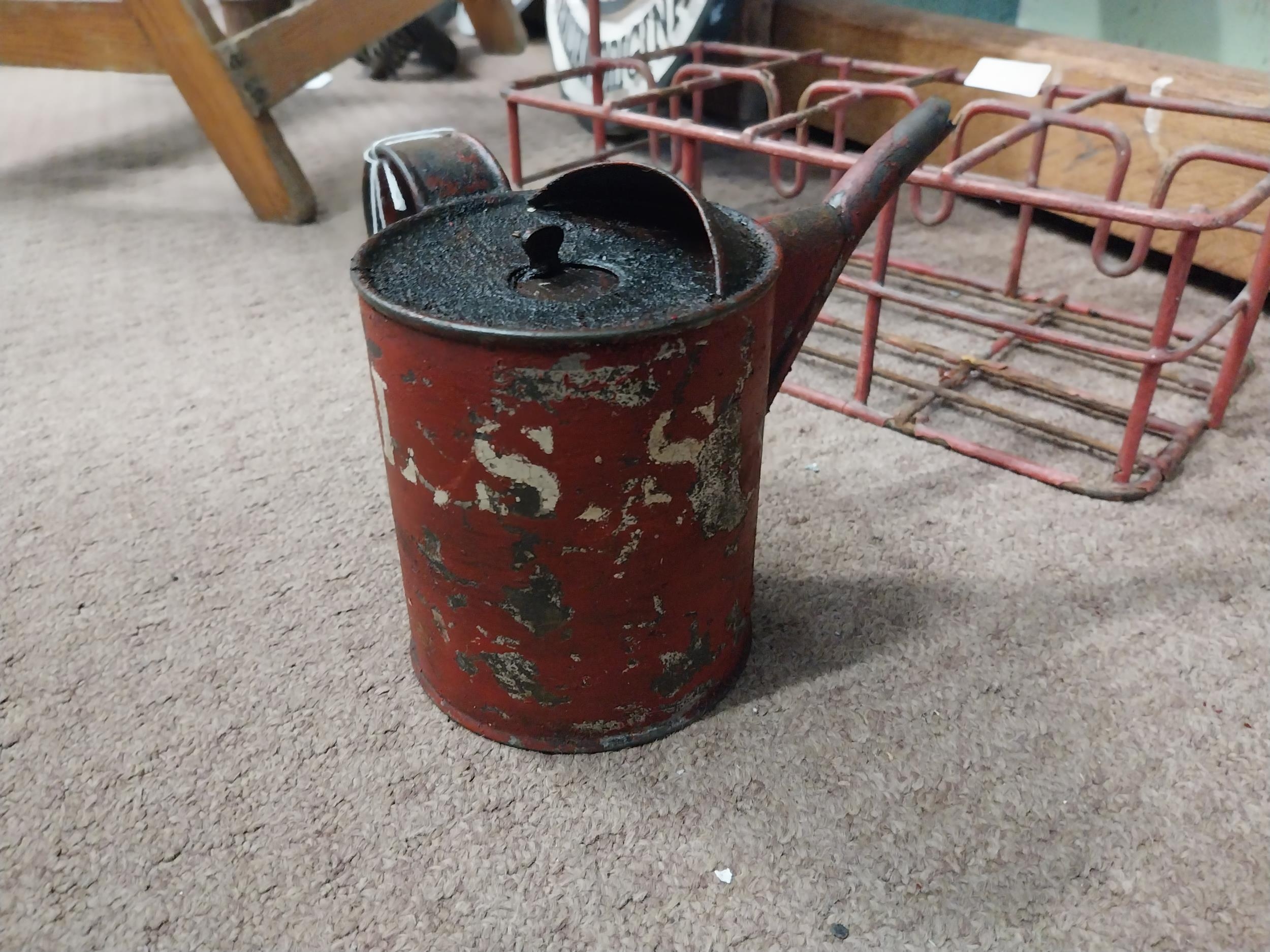 CLSS metal oil can. {13 cm H x 18 cm Diam}.