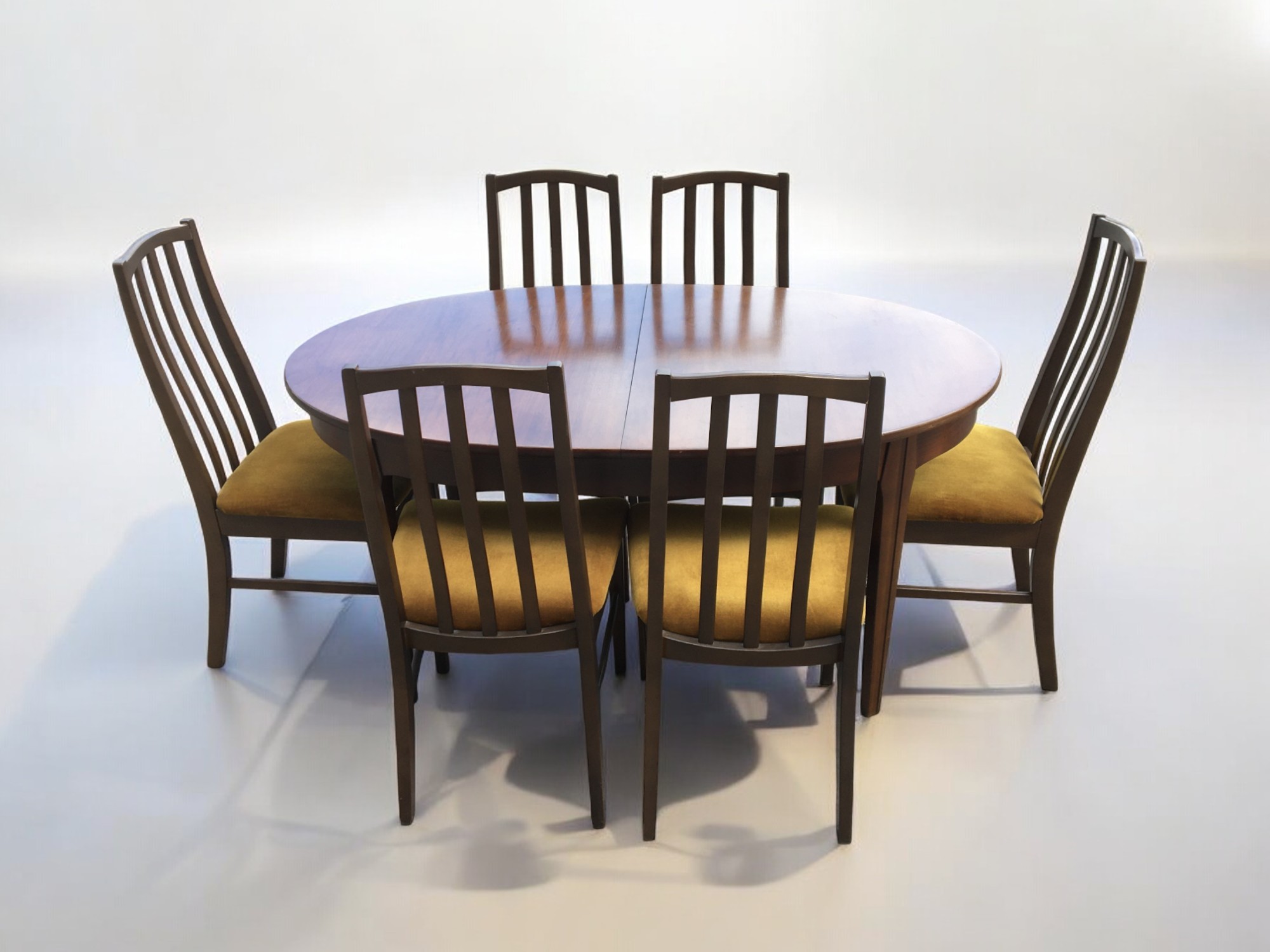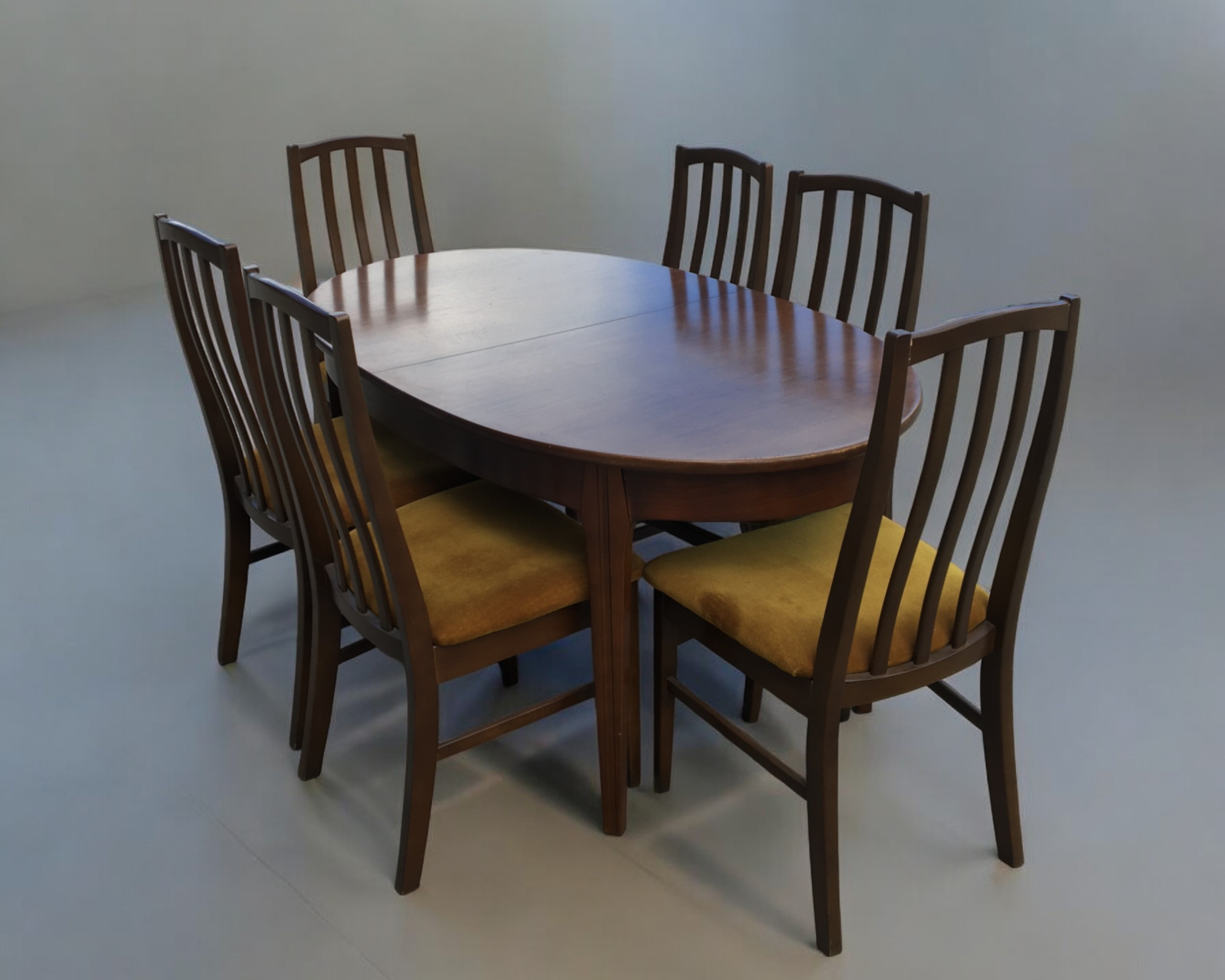 Mid Century Extending Dinning Table and 6 Chairs, All stamped 1979. In The G-Plan manner.