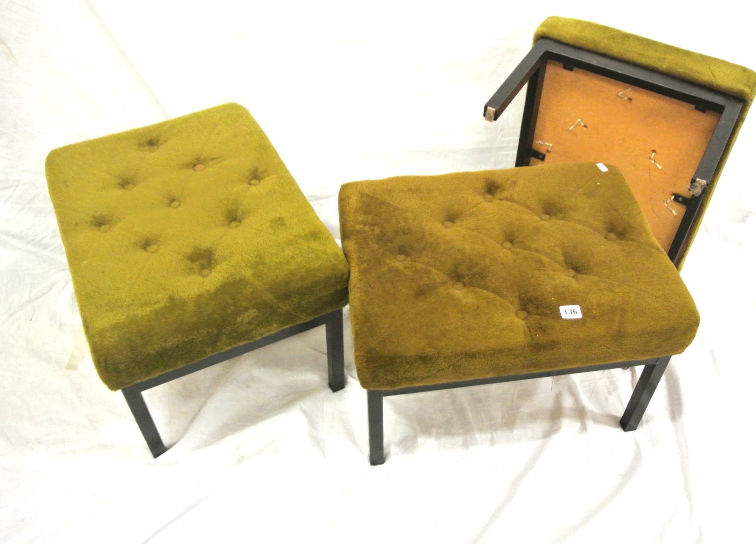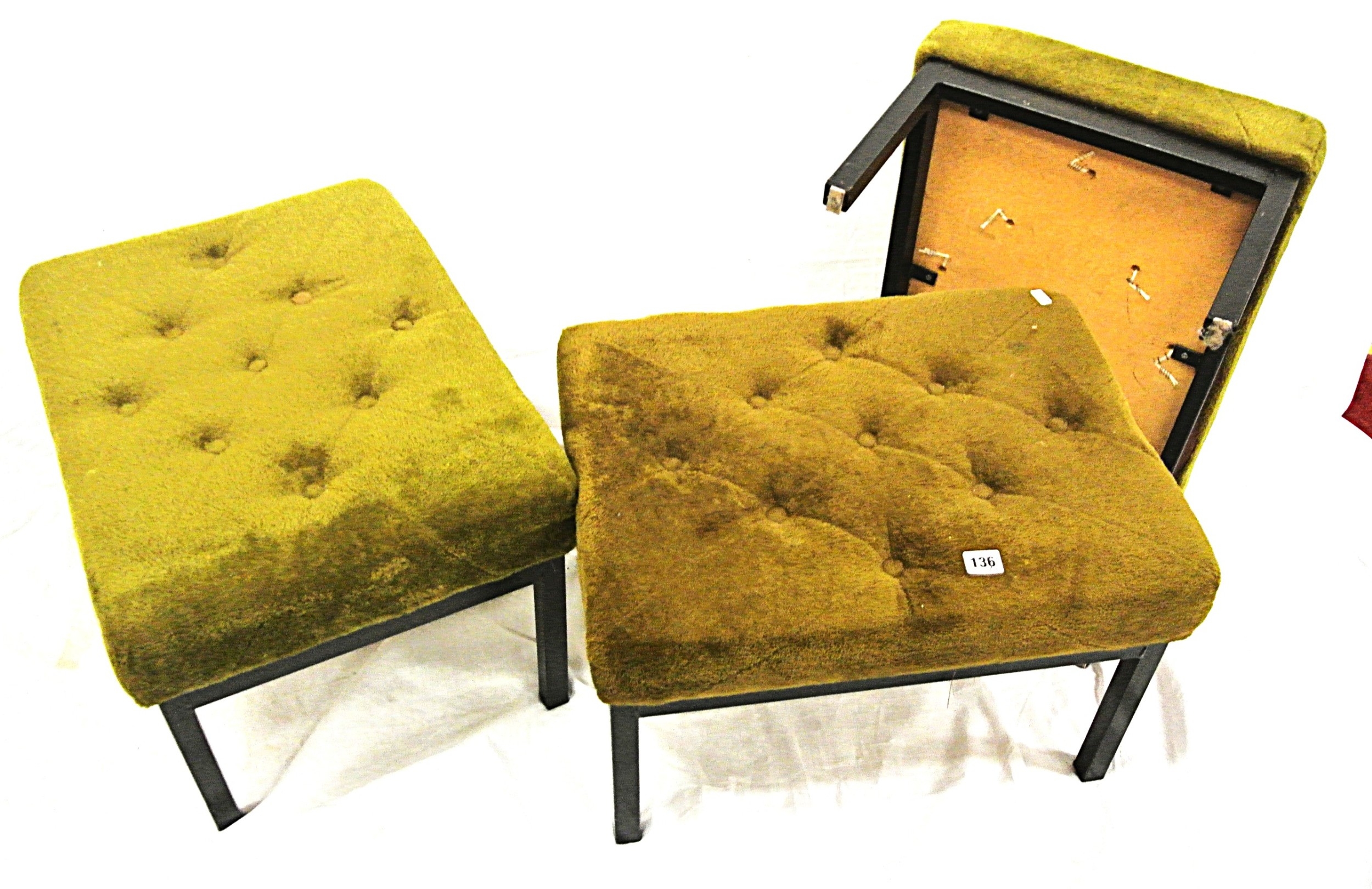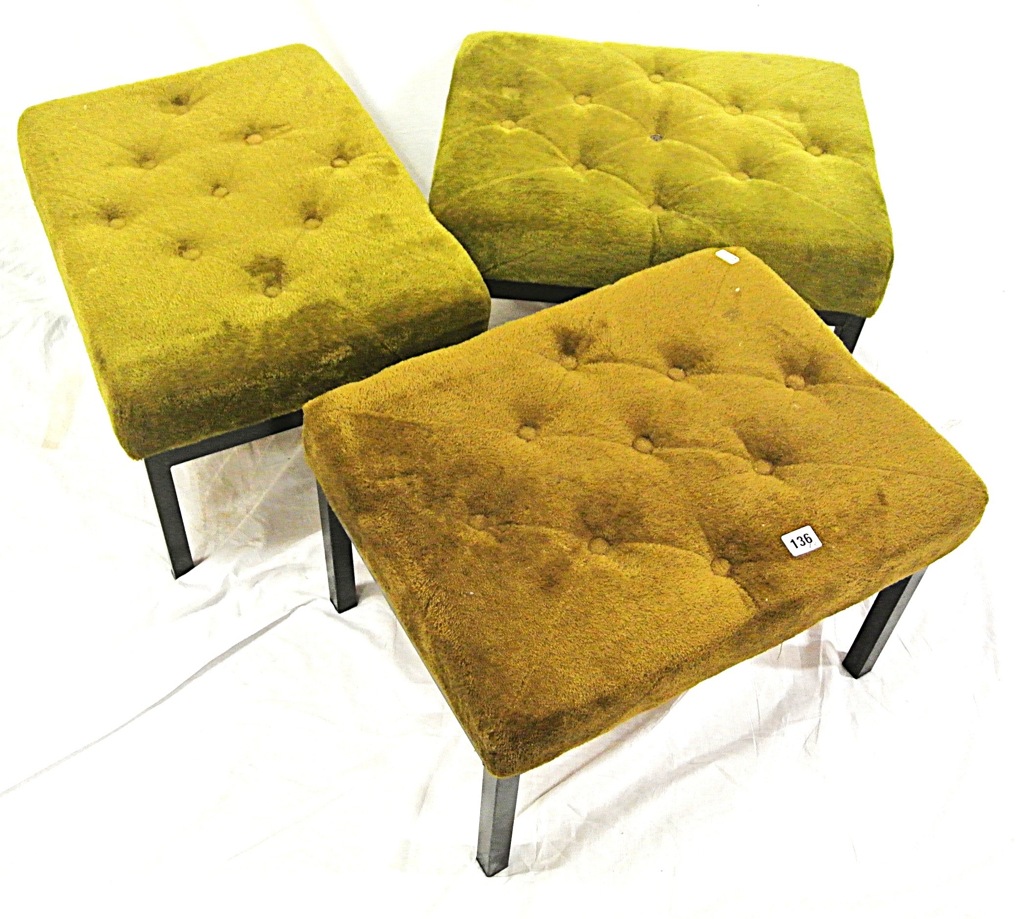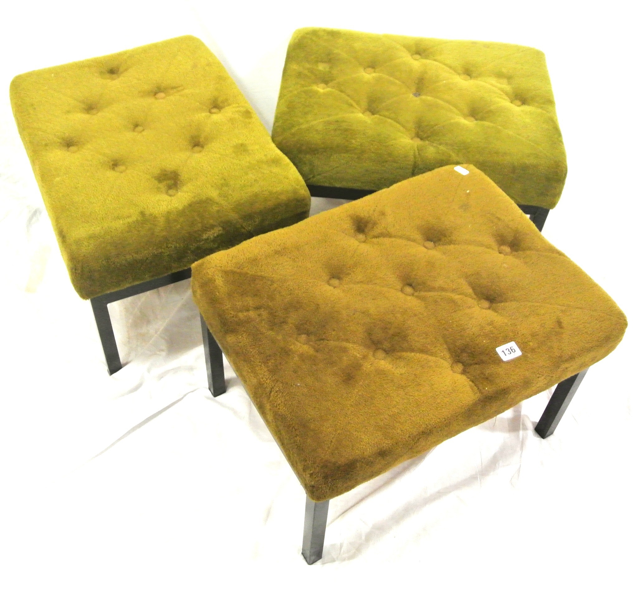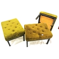 Set of 3 stools with buttoned upholstered tops