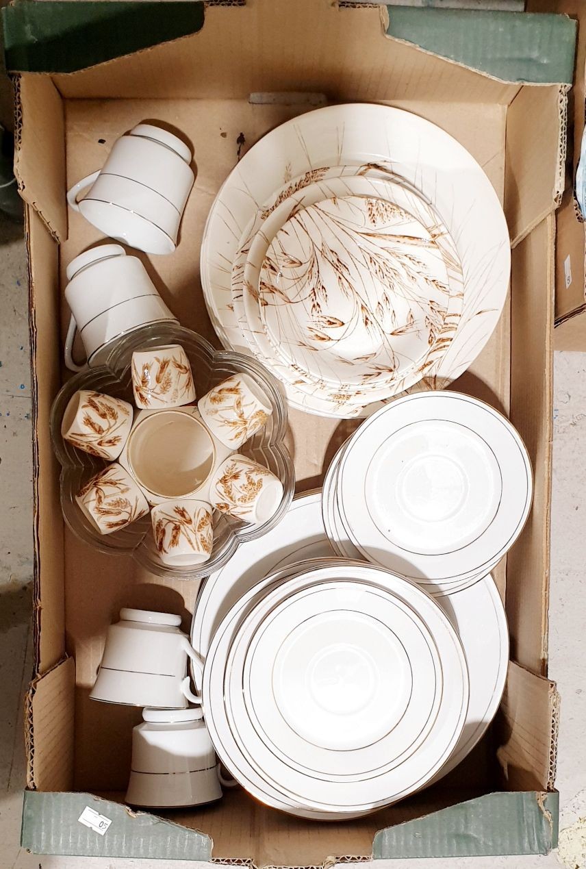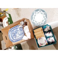 A box including dinnerware. No shipping. Arrange collection or your own packer and shipper, please.