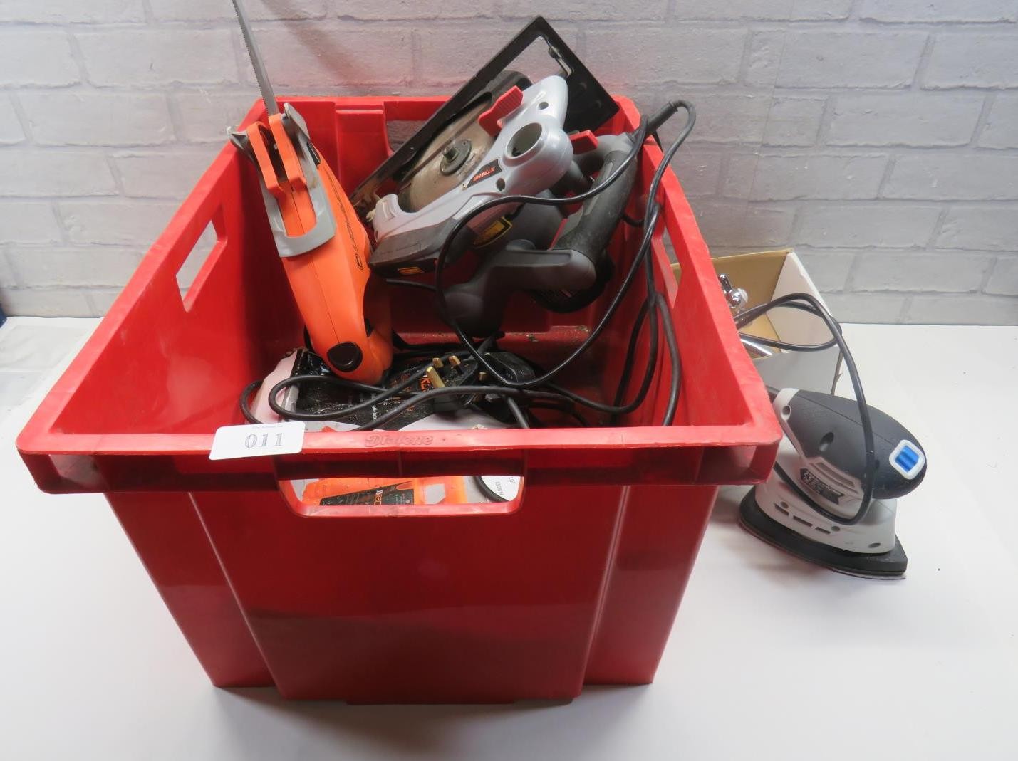 SELECTION OF TOOLS INCLUDES MAC SANDER, SCORPION SAW, RIP SAW ETC