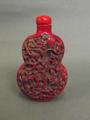 A Chinese composite cinnabar style double gourd scent bottle with numerous carved monkeys to side, 3¾' high
