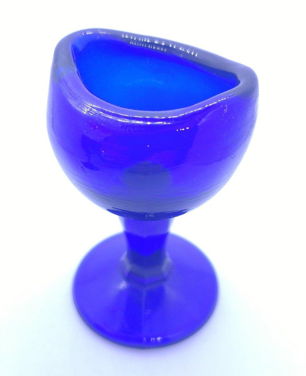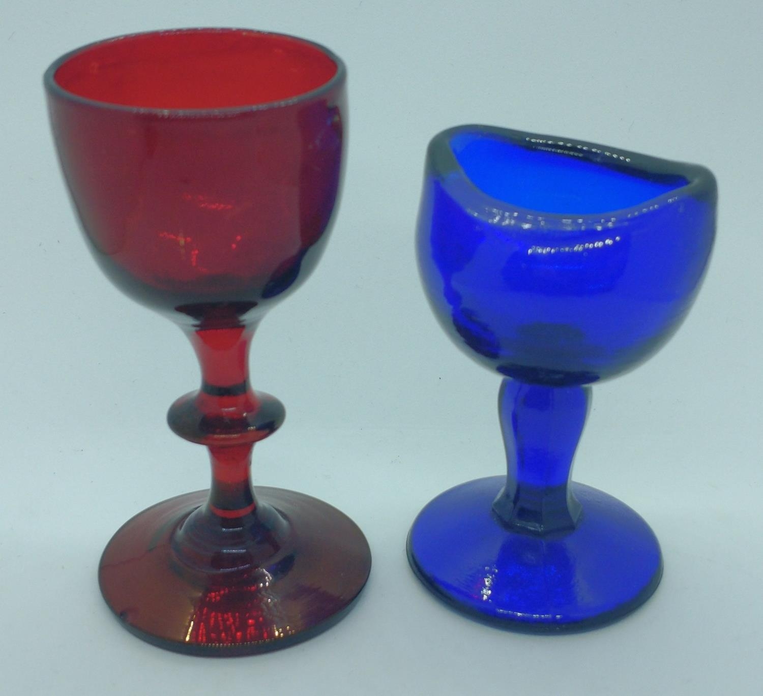 VINTAGE cobalt blue glass EYEWASH BATH stands approx. 7cm tall plus a small red glass 8cm high.
