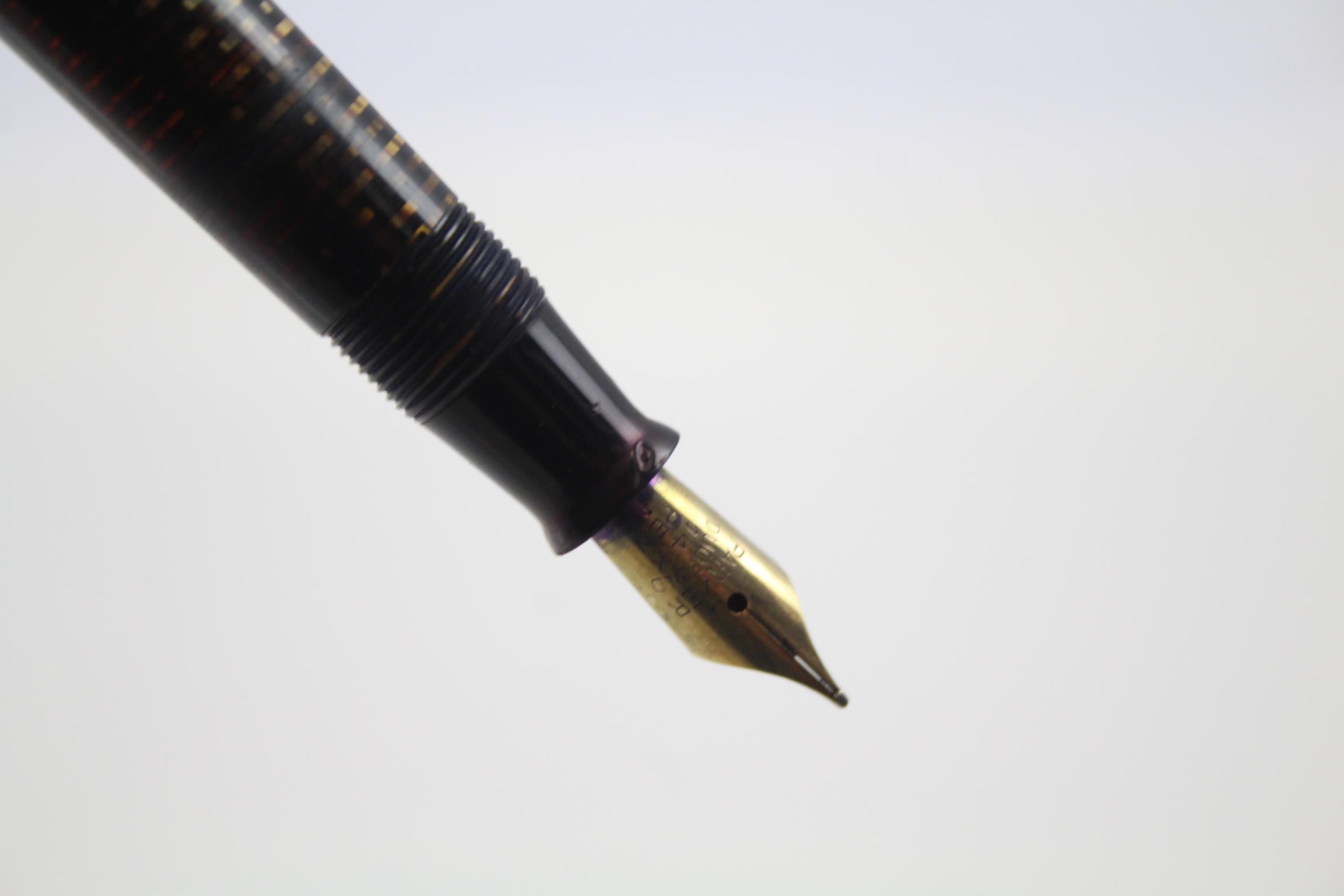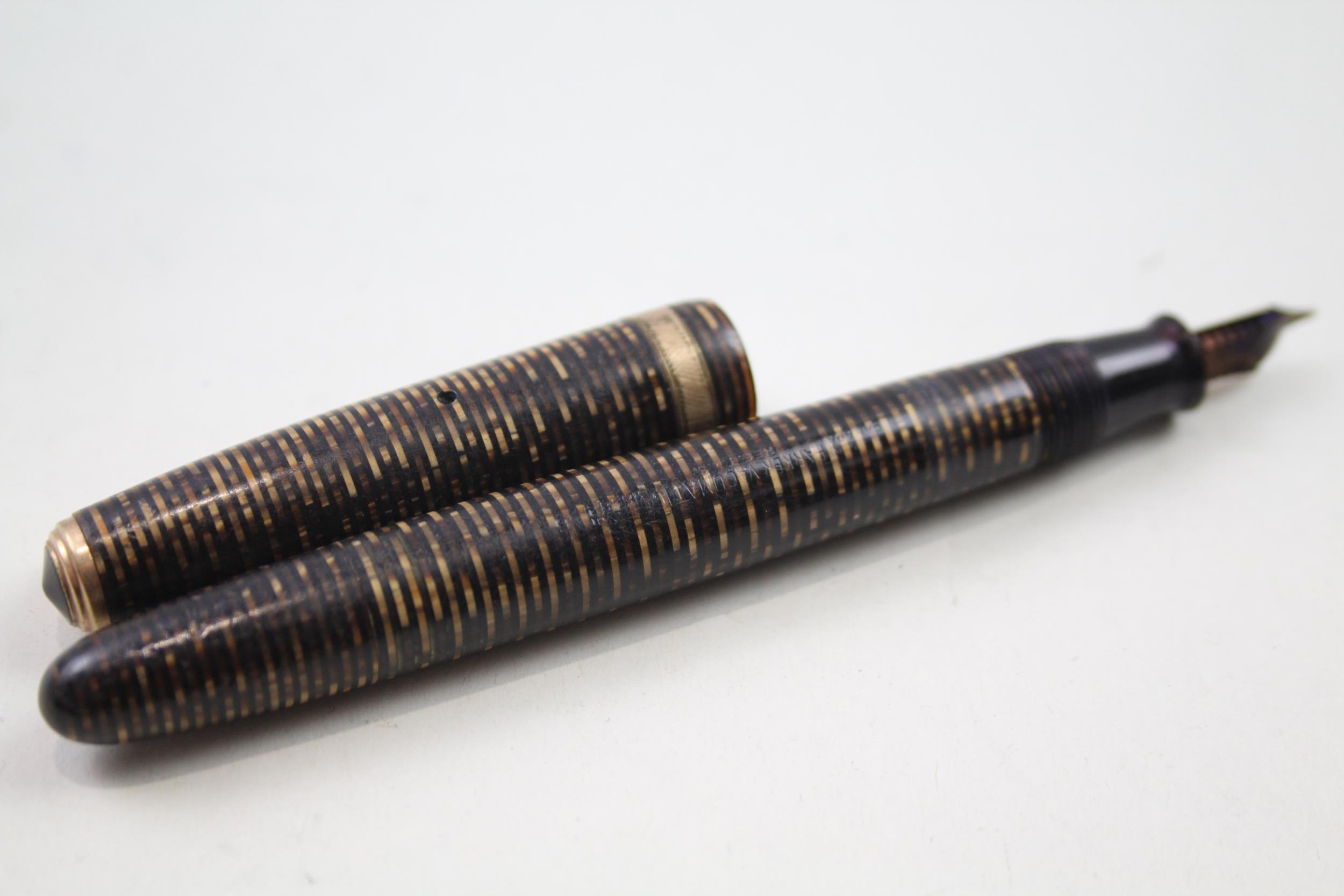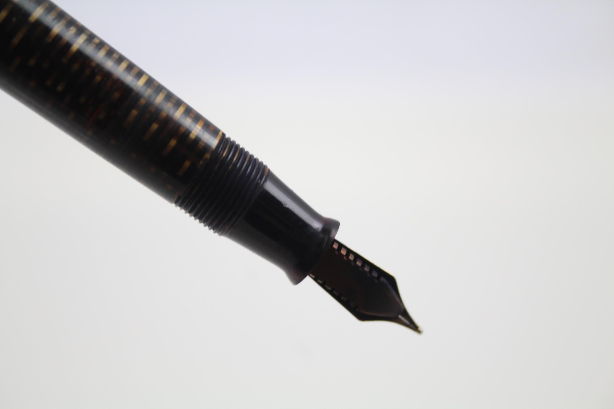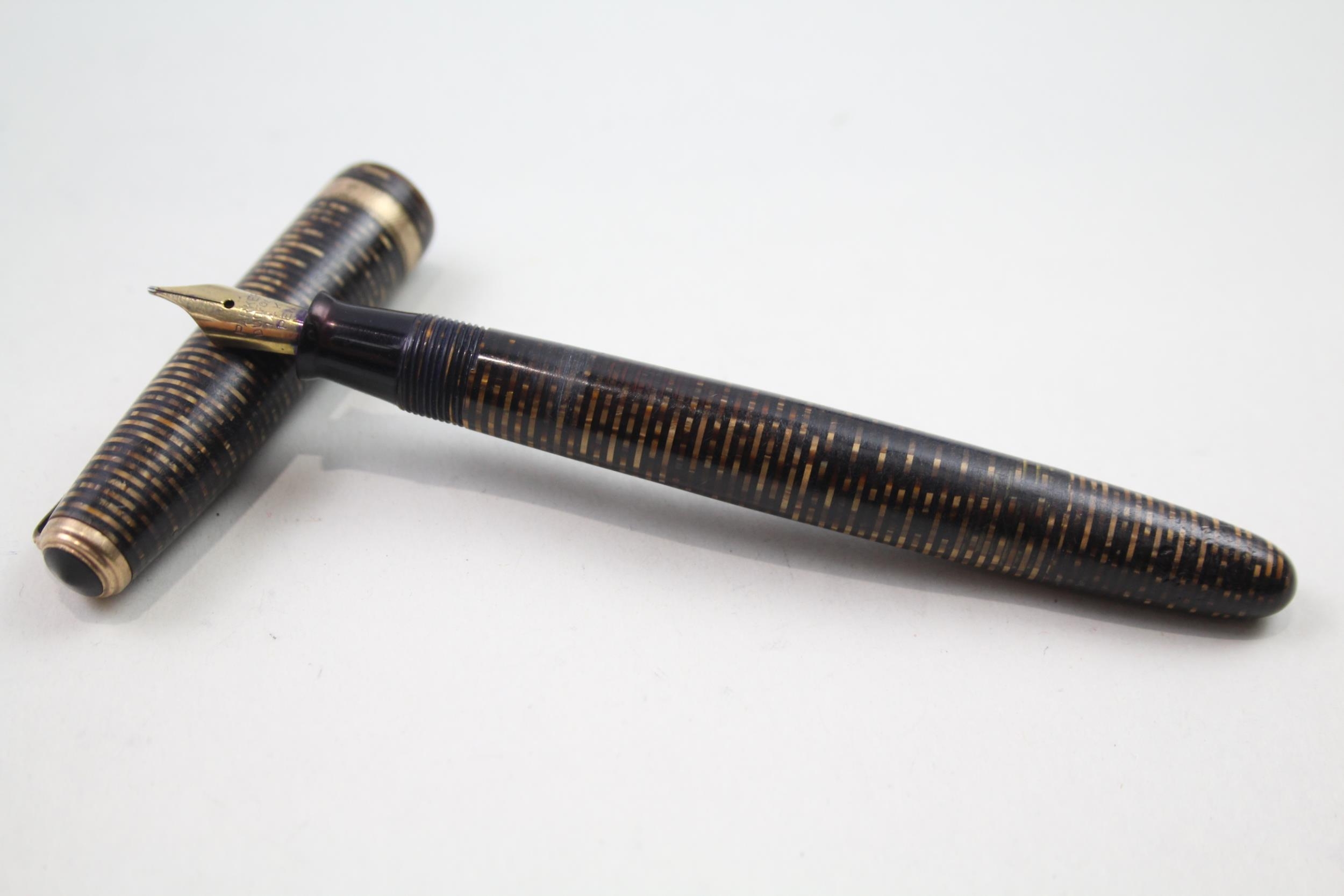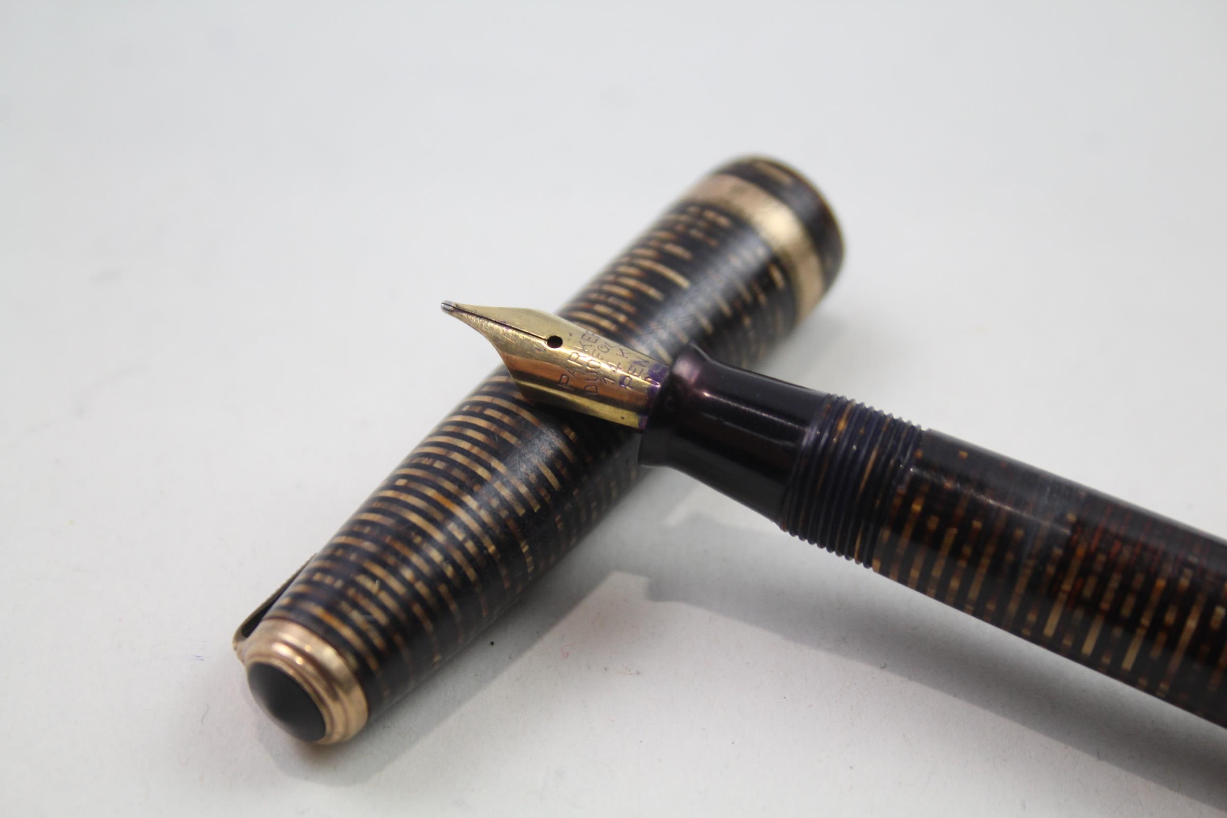 Vintage PARKER Vaccumatic Brown FOUNTAIN PEN w/ 14ct Gold Nib WRITING