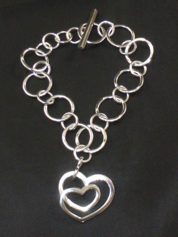 Silver Bracelet with entwined Hearts Decoration