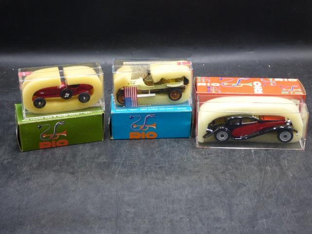 Three Rio Boxed Die-Cast Vehicle's including Bugatti, Alfa Romeo and Thomas Flyer