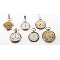 Six various pocket watches to include;- Lancashire Watch Company, a key-wound open-faced pocket watch the round white enamel dial having black Roman numerals, gold spade hands, a subsidiary seconds dial and signed for the retailer Albert Bale & Co., Bristol, the case hallmarked for silver, Chester 1899 and numbered 327154 along with the initials T.P.H. for the Lancashire Watch Company Ltd of Prescot, Thomas Peter Hewitt being the managing director, the full-plate movement having an engraved balance cock to the lever escapement and numbered 327454, diameter 58mm, gross weight c.162.55gs. For details of the Lancashire Watch Company see Leigh Extence, The Dennis Bacon-Max Cutmore Collection of Watch Movements, Exhibition Catalogue, 2012. J.J. Masters Rye a Swiss Made open-faced pocket watch the round white enamel dial having black Roman numerals, gold spade hands, a subsidiary seconds dial and signed J.J. Masters Ltd, Rye, Six Prize Medals, Swiss Made, the case having engine-turned decoration to the rear and stamped within with a silver import mark and .925, the Swiss-bar movement having a cylinder escapement, diameter 48mm, gross weight c.77.14gs. Lister & Sons, Newcastle Upon Tyne an open-faced key-wound fusee pocket watch the round white dial having black Roman numerals, gold spade hands and a subsidiary seconds dial, the case hallmarked for silver, London 1842 and stamped S.B for the case maker Stephen Bryan, the fusee movement having an engraved balance cock to the lever escapement and engraved Lister & Sons, Newcastle Upon Tyne, 32079, diameter 50mm, gross weight c.96.04gs. Locke, a Swiss pocket watch. Two modern pocket watches.