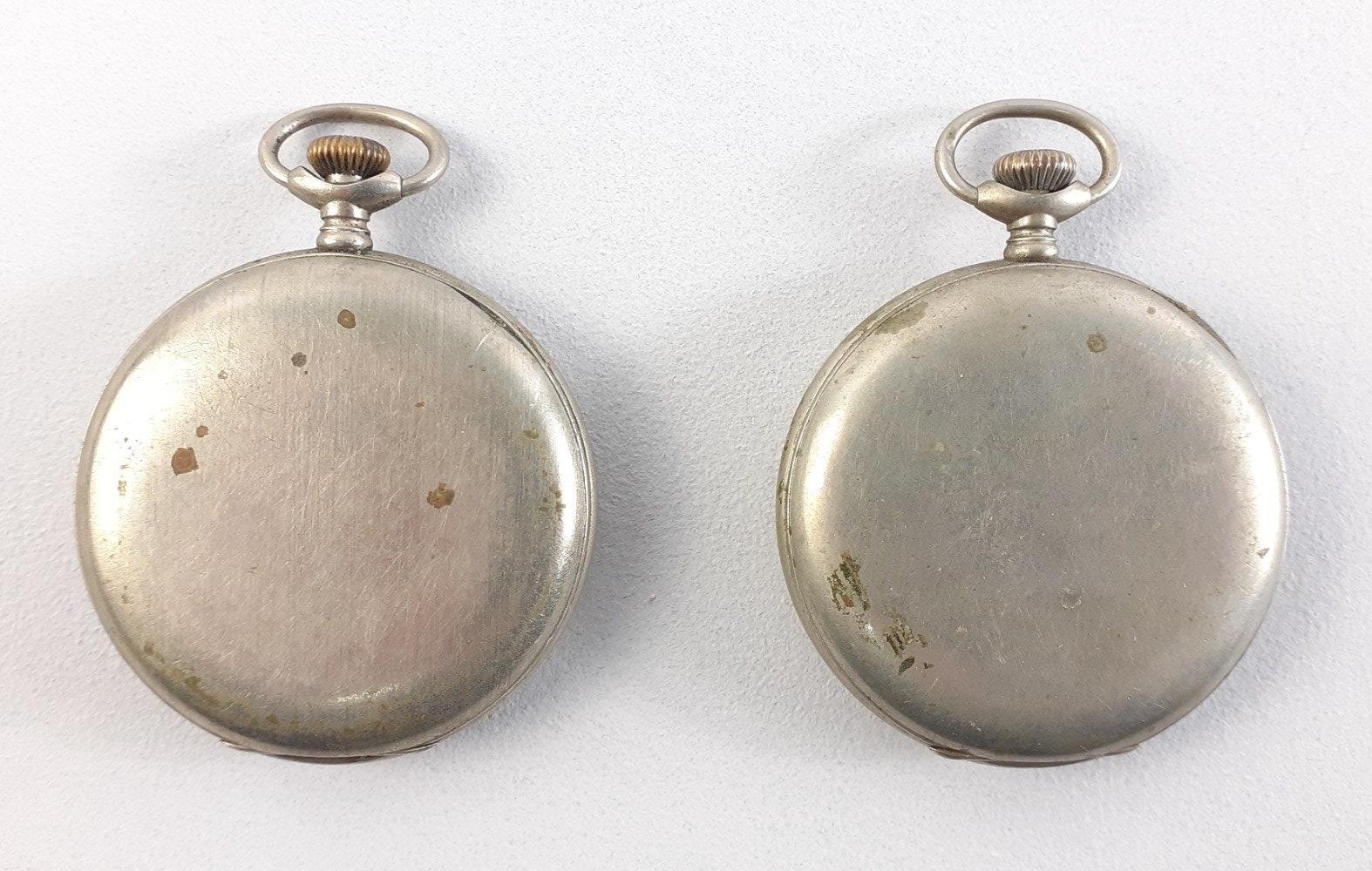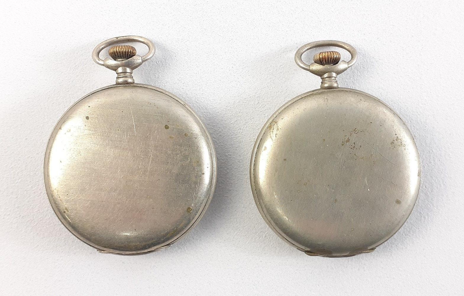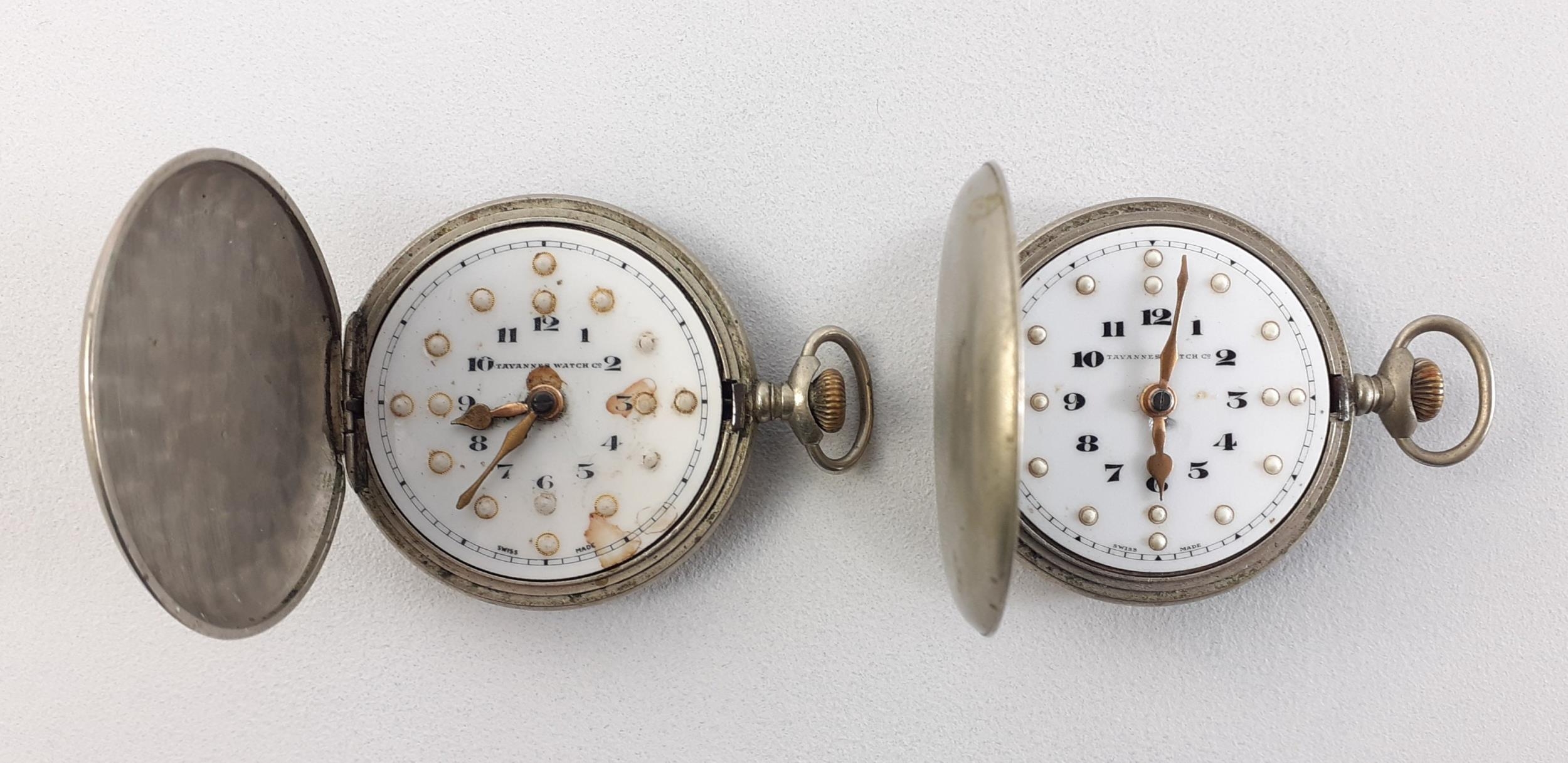 Two wonderful TAVANNES Swiss BRAILLE pocket watches. Complete case, both with nice clean dials and hands intact. One seized and one winds but unsure if running accurately. These have been together in the vendors family for over 100 years as her grandfather's brothers were both blind and received them at the same time.