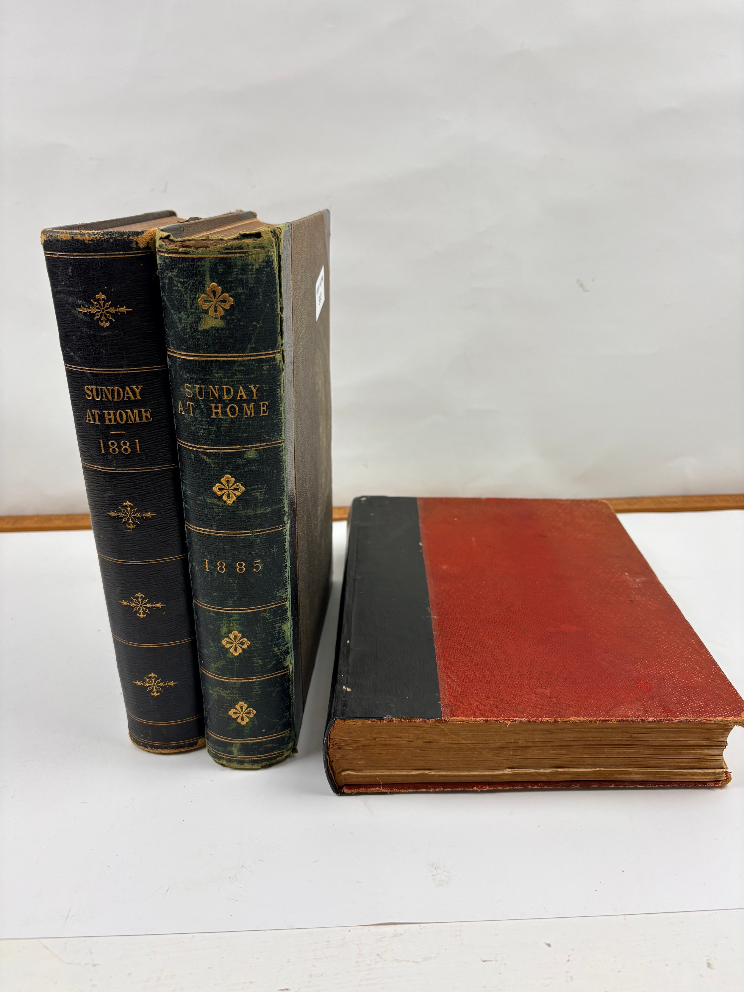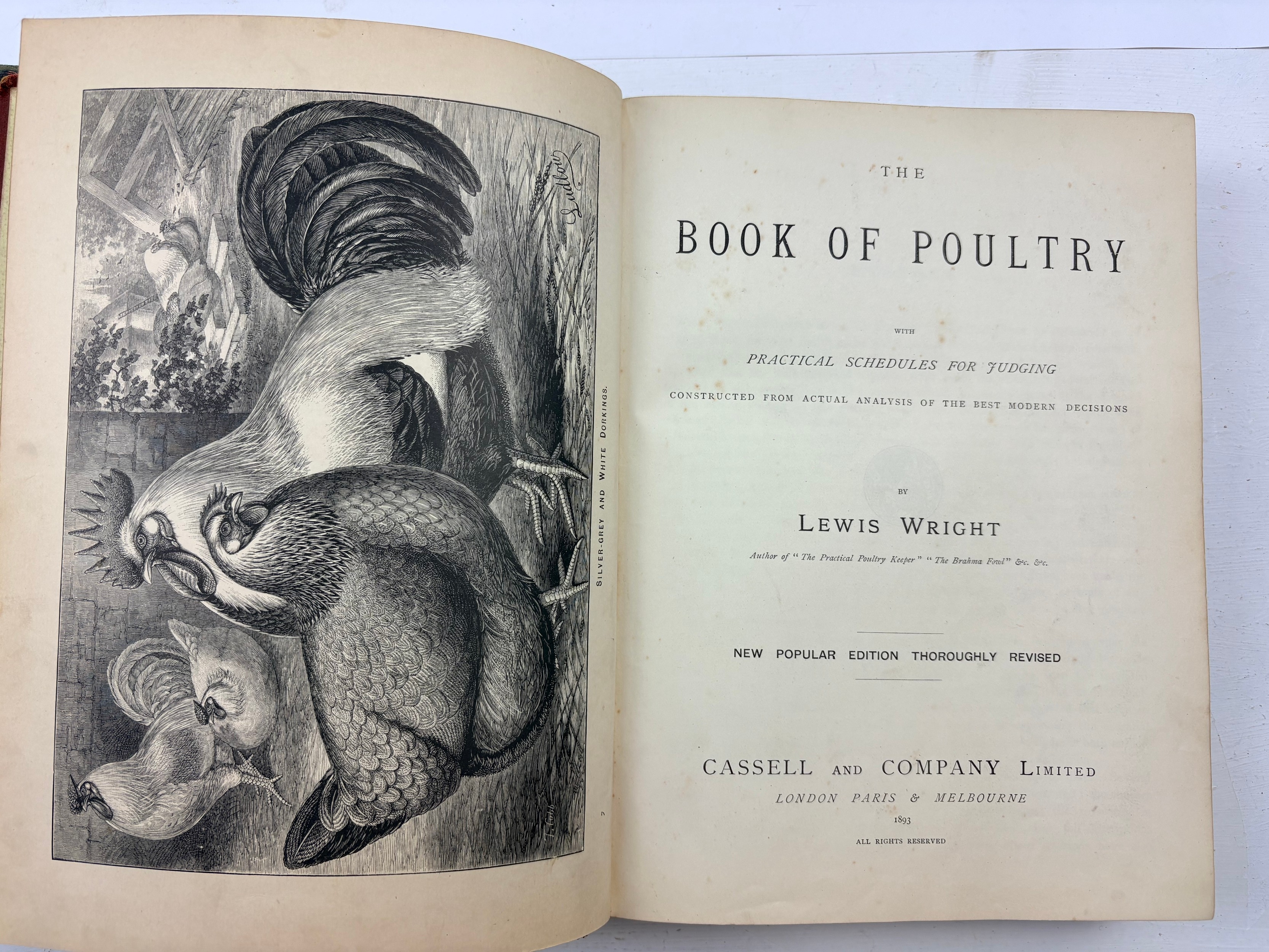 3 x antique books, a 1893 'Book of Poultry' by Lewis Wright and 2 x 'Sundry Home Family Magazines' from 1881 and 1885