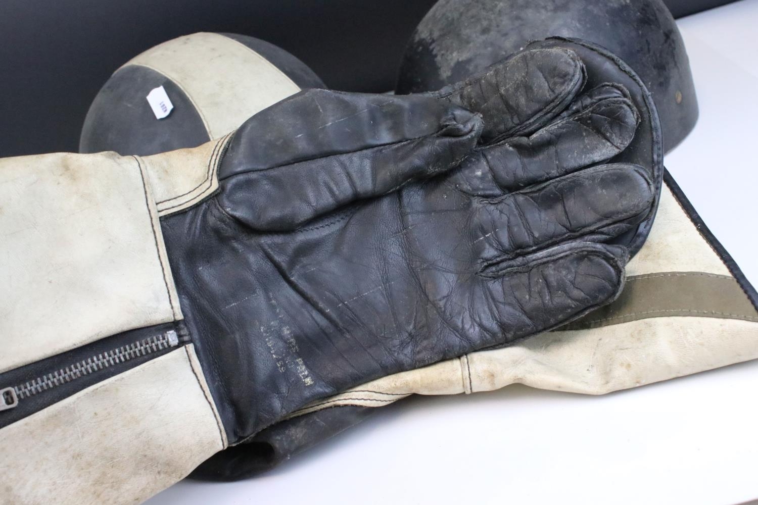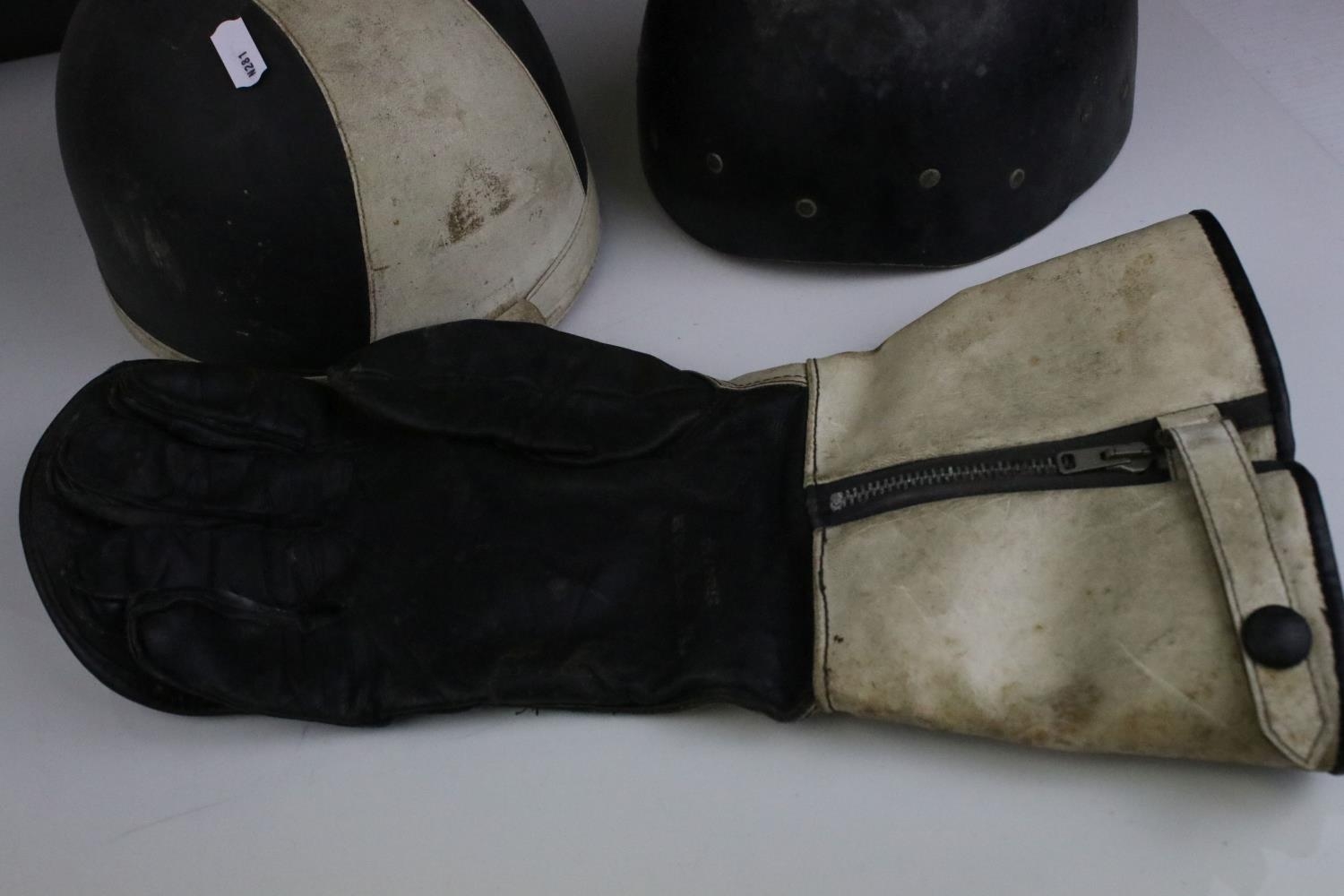 Mid 20th century Motorbike Helmets together with Pair of Signalite Motorbike Gloves