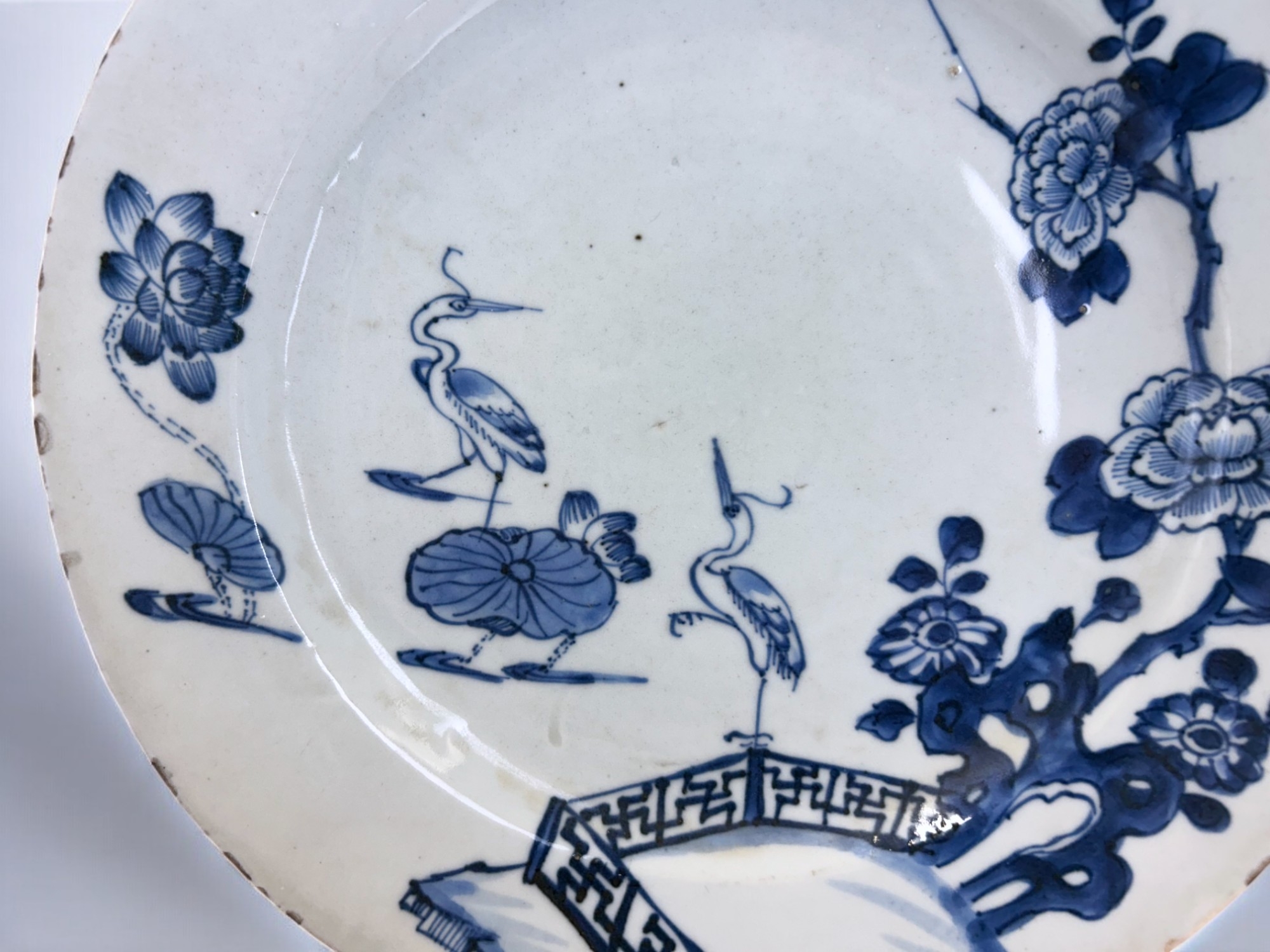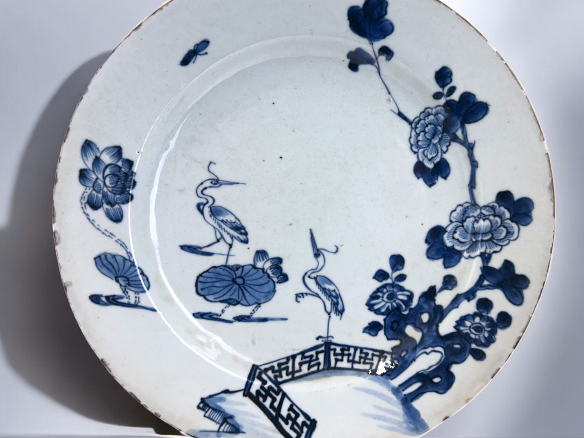 Decorated with Cranes & lilies, bordering a fenced garden with large flowers.