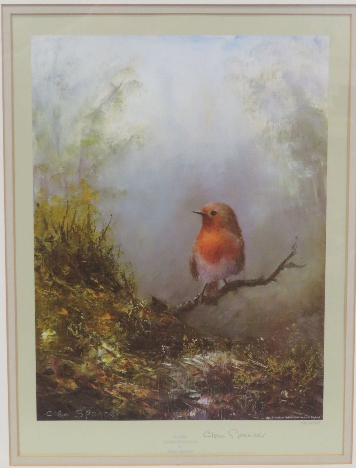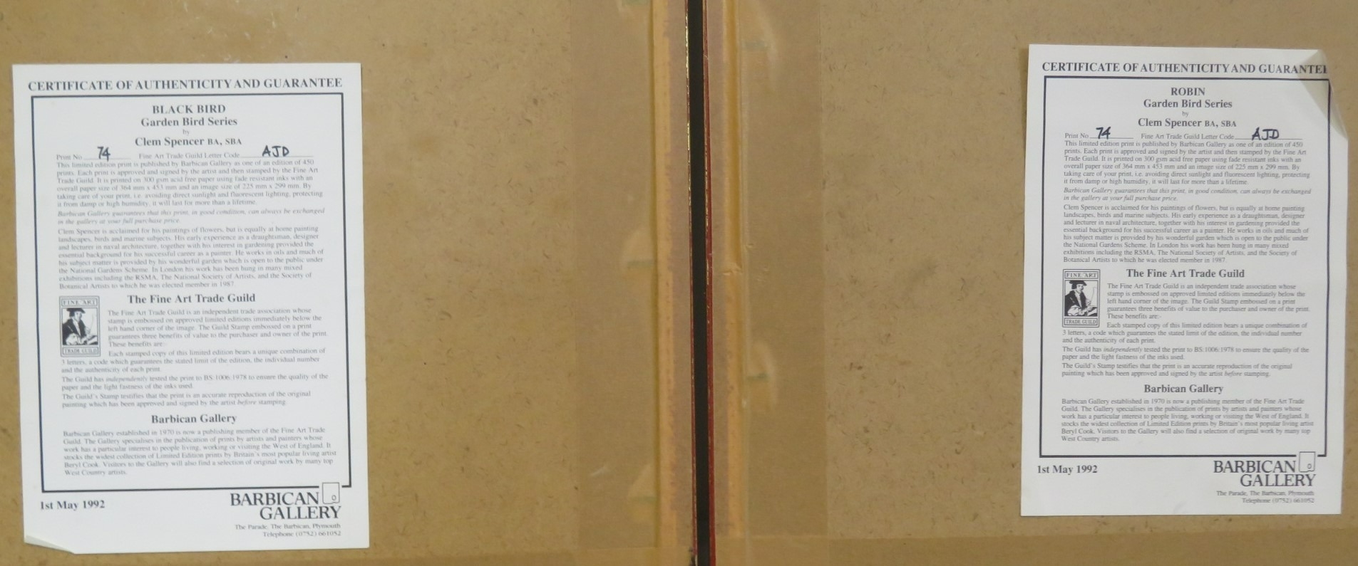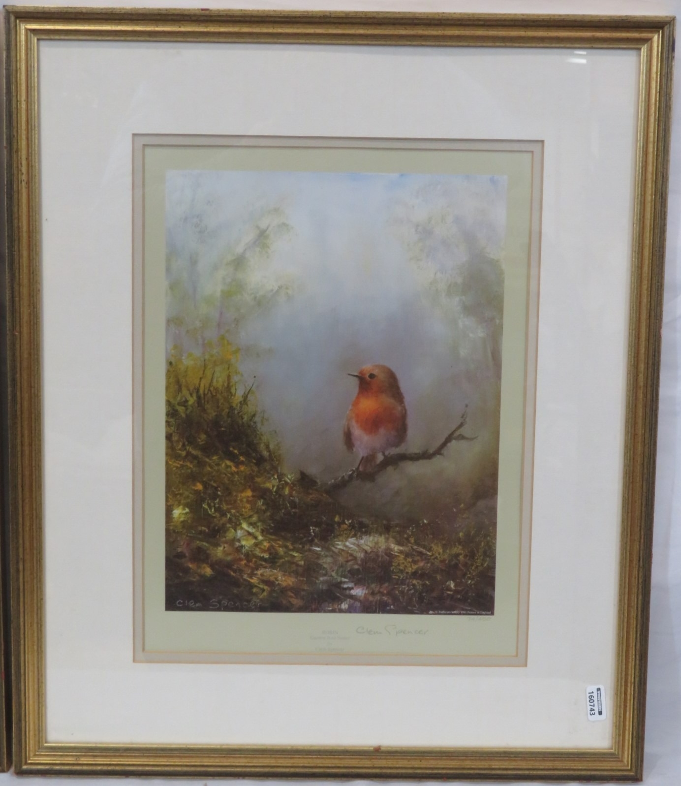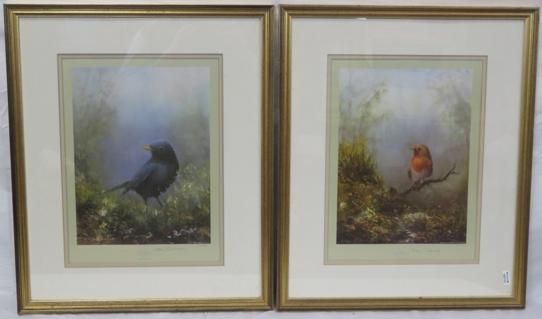 Clem Spencer 'Robin' & 'Blackbird' pair of prints, 30x22cm each
