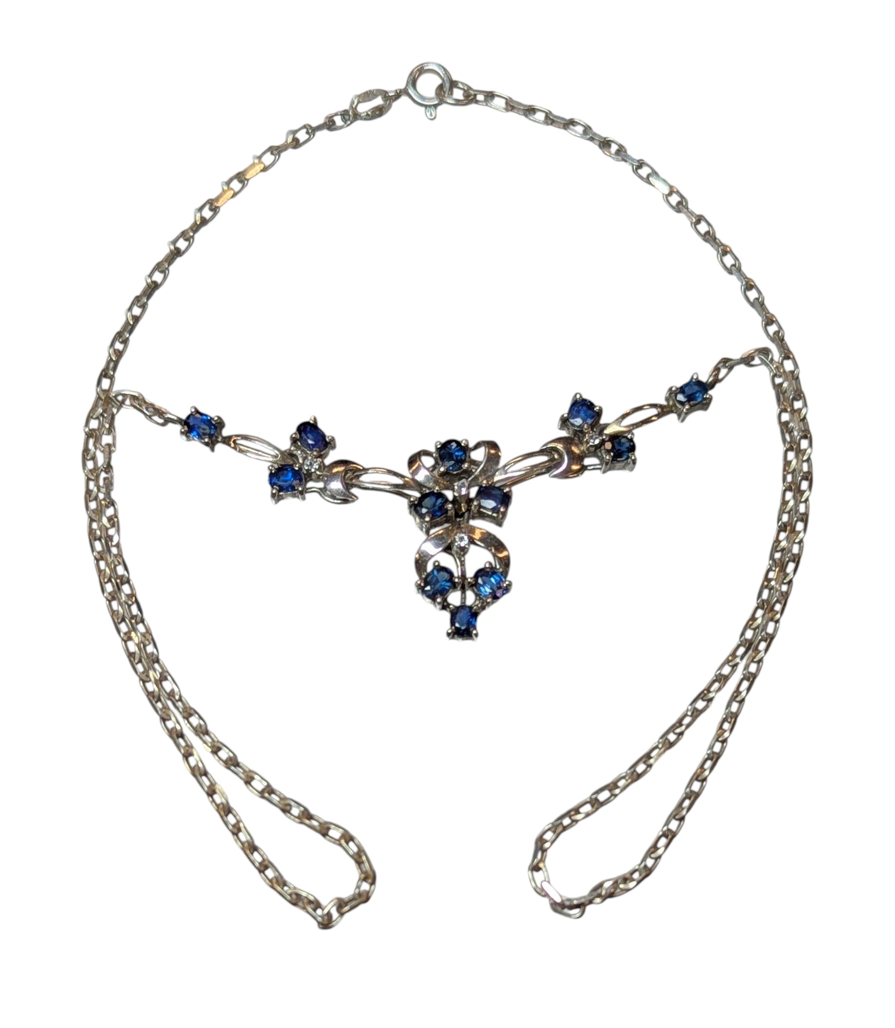 An Art Nouveau Style sapphire and cubic zirconia set pendant necklace,