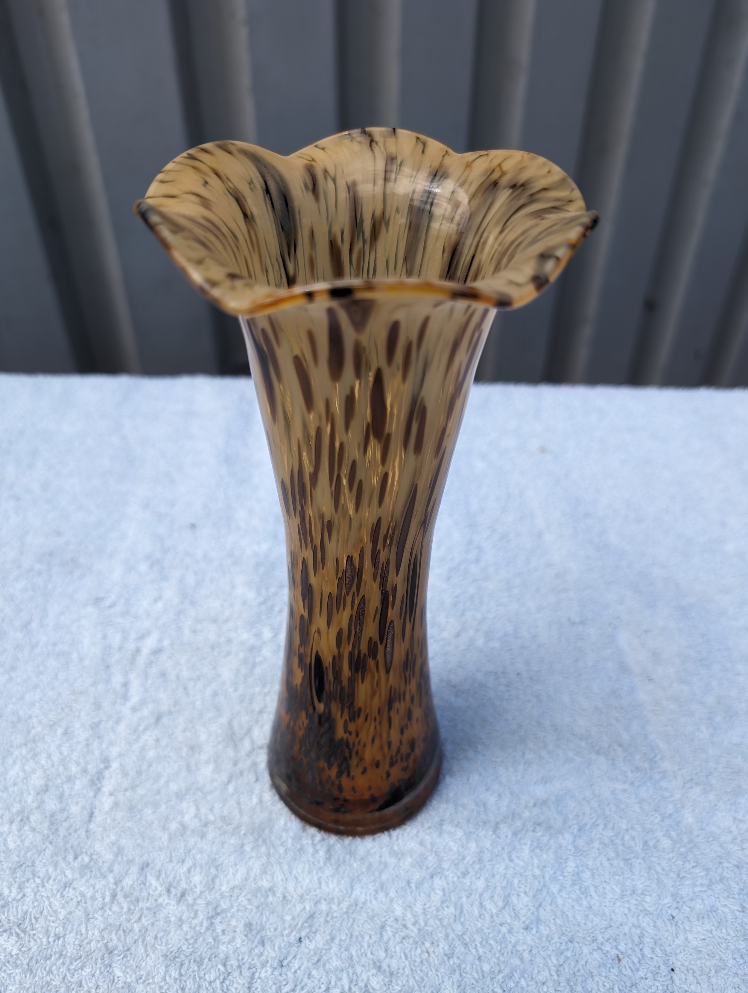 Vintage Mid Century Amber Glass Art Tortoise Shell Style Spatter Vase 30cm