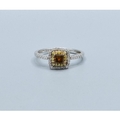 9ct white gold ladies square shape Citrine with white and yellow Diamond halo design with Diamond shoulders head size 8.5mm square size O