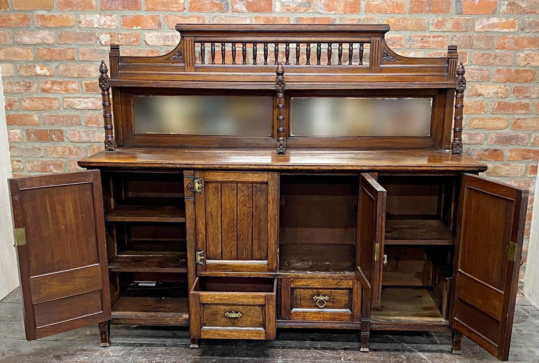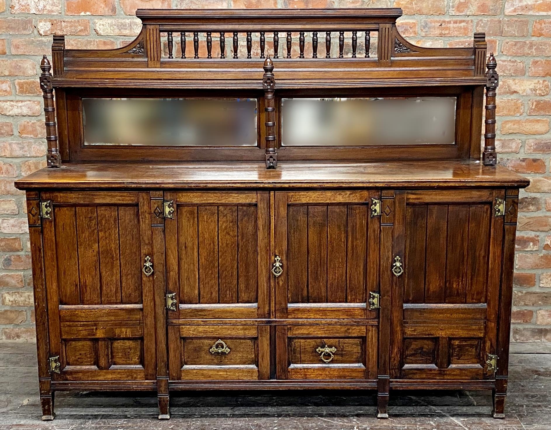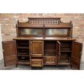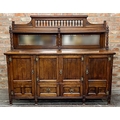 Good early 20th century oak sideboard in the manner of Charles Locke Eastlake, raised mirror back, with base fitted with drawers and cupboards, good strapwork, 180cm long
