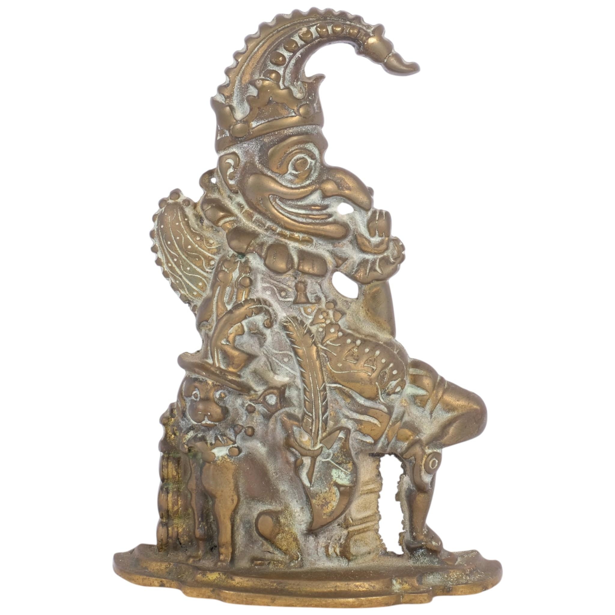 An early 20th century cast-brass Mr Punch doorstop, H29cm