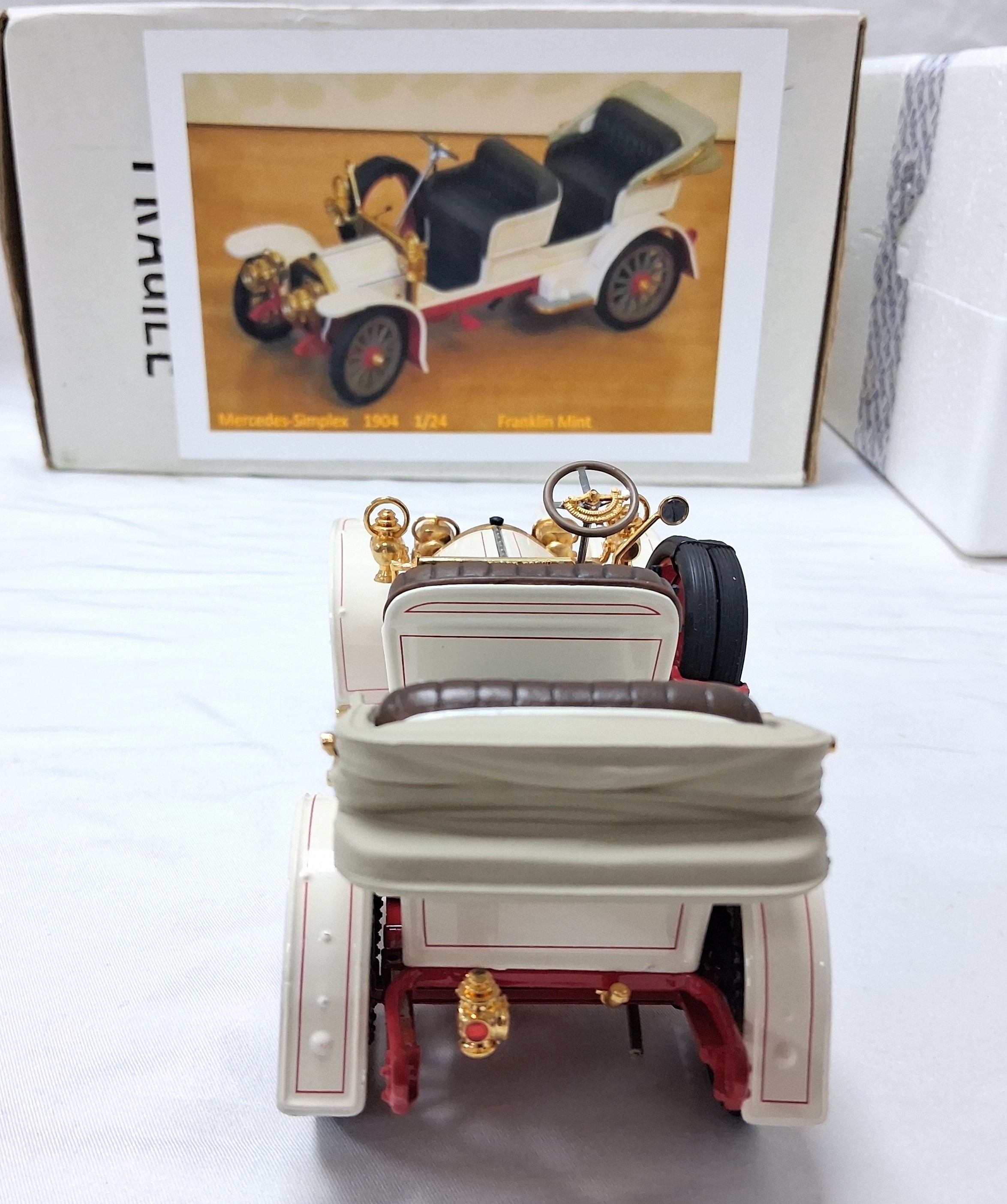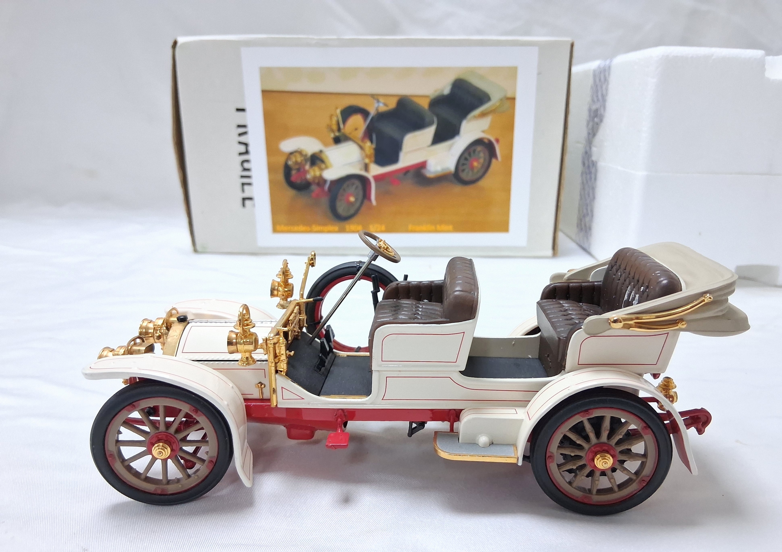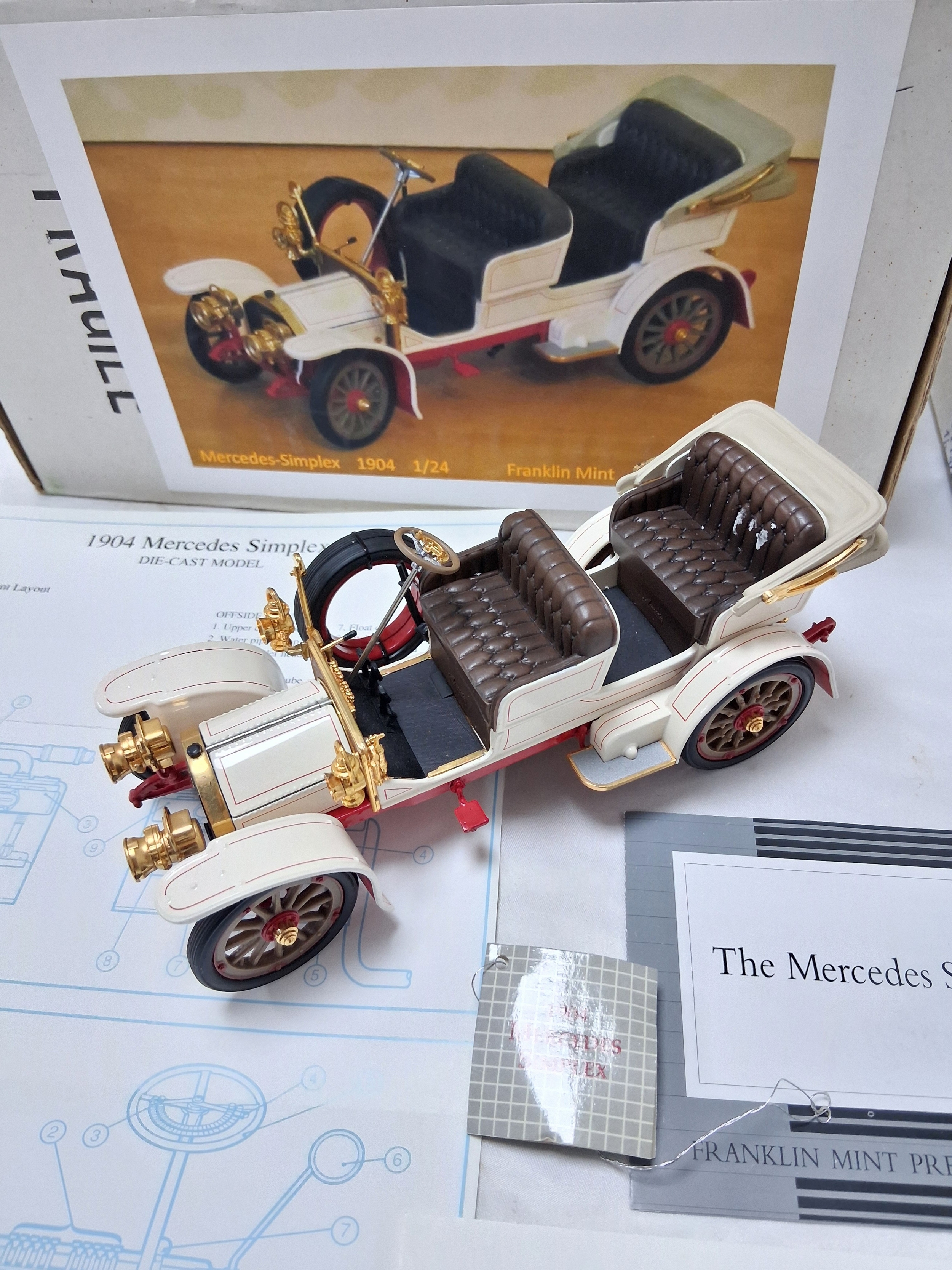 A Franklin Mint 1904 Mercedes Simplex. 1/24th scale. Very good condition with paperwork. Box has some wear.