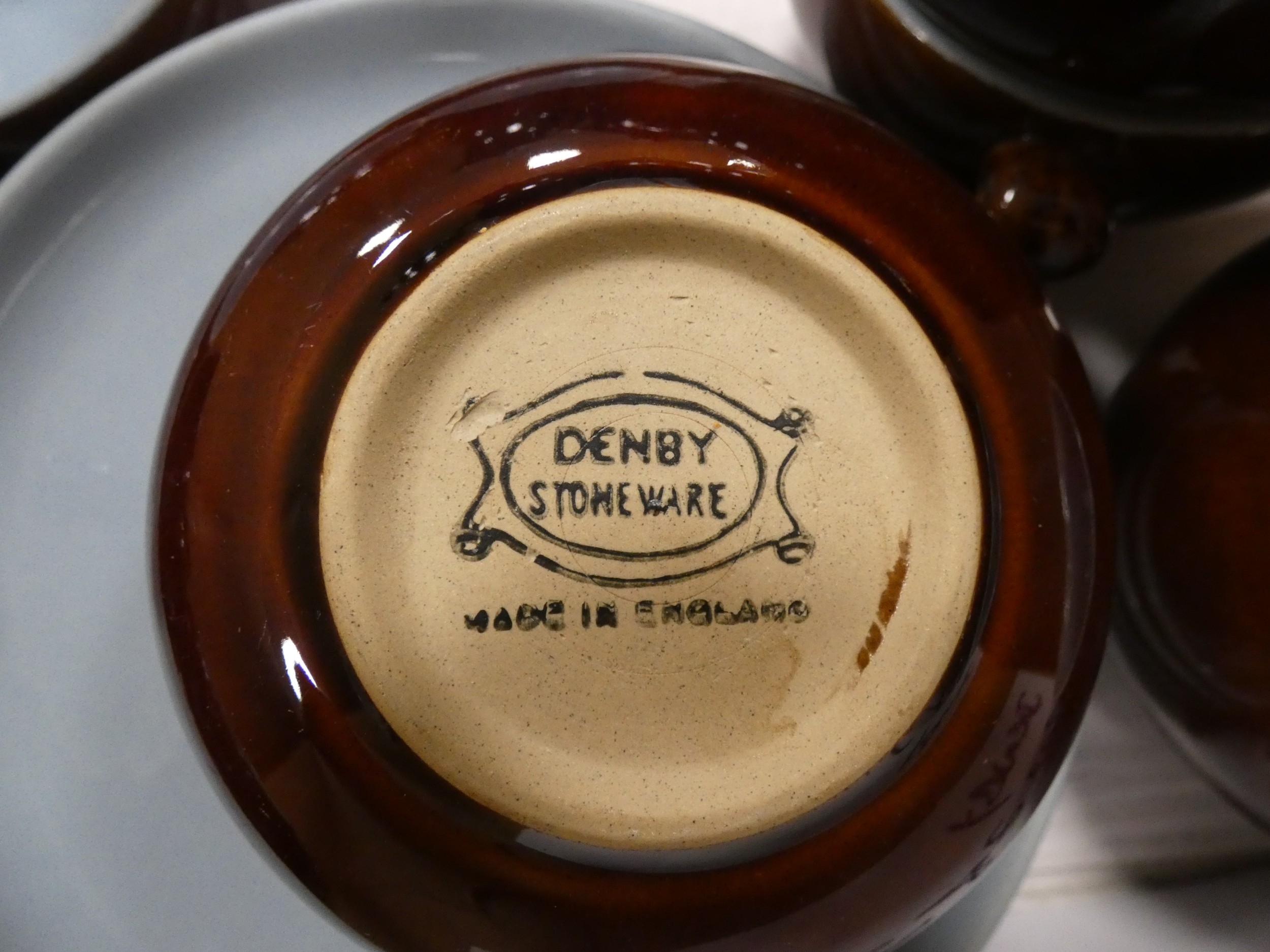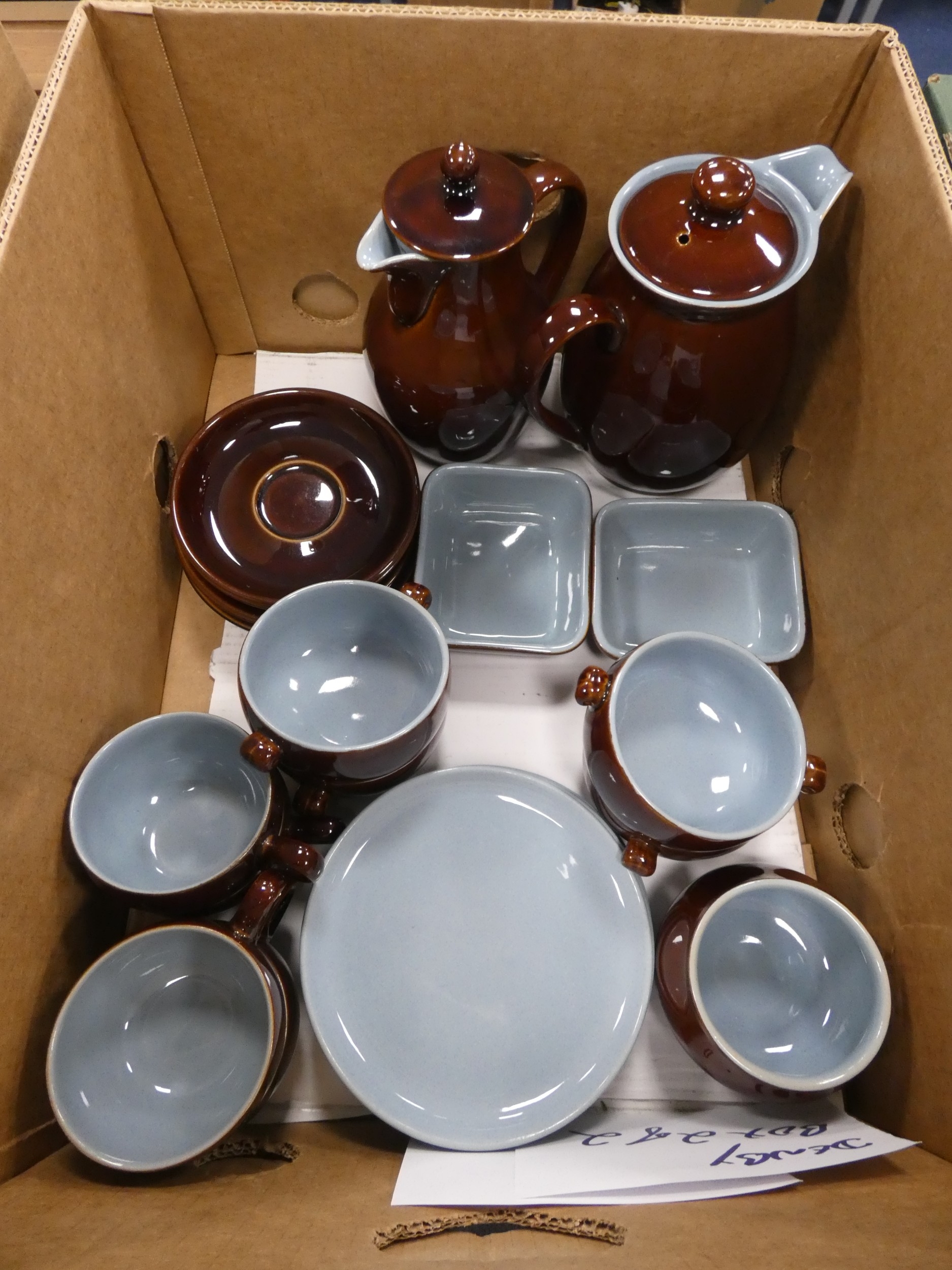 Denby part tea and coffee set glazed in brown and pale blue.