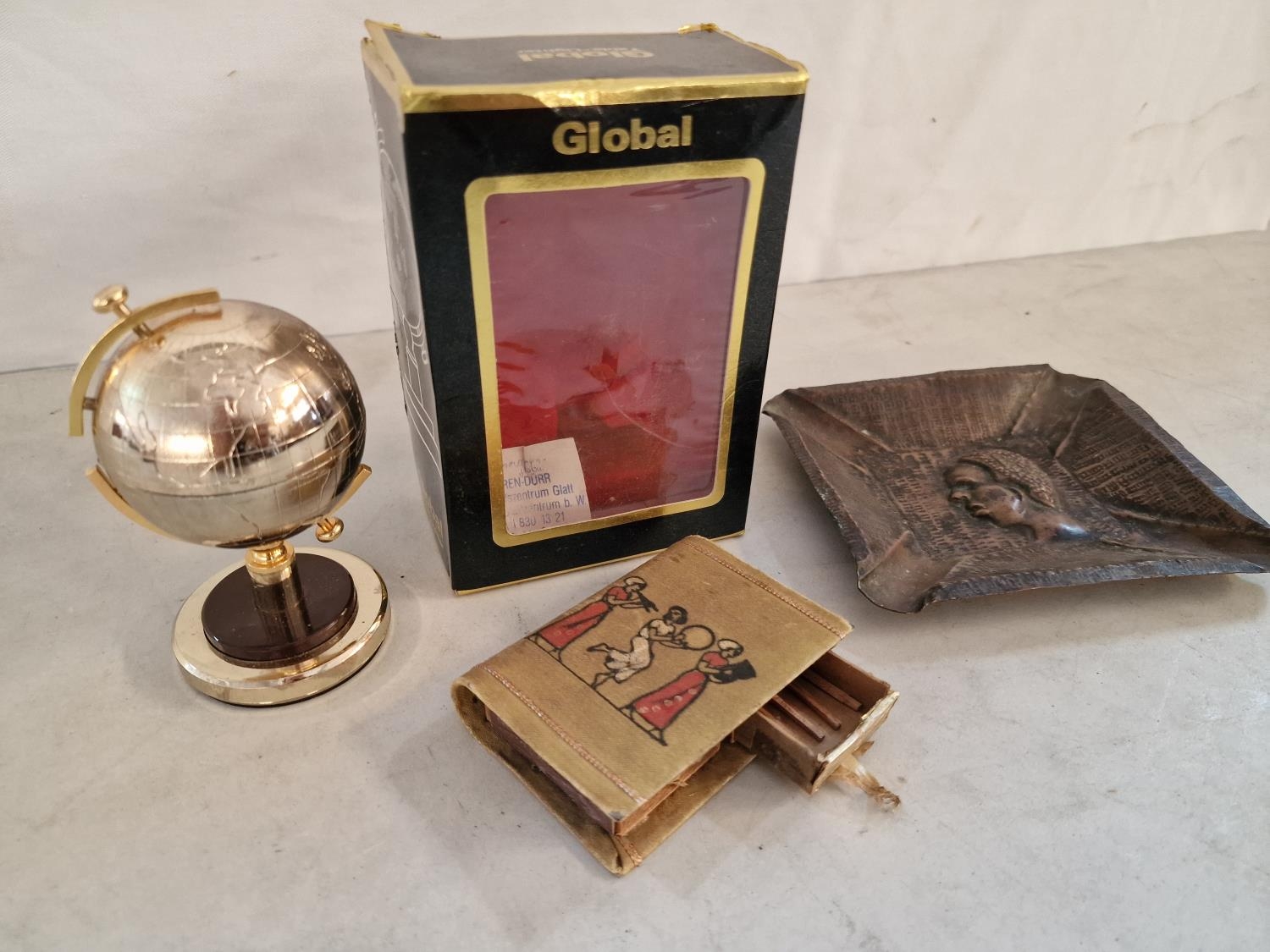 'Global' Table Lighter (Globe Shaped) in Original Box, Together with Vintage Twin Matchbox Holder and Ashtray, (3)