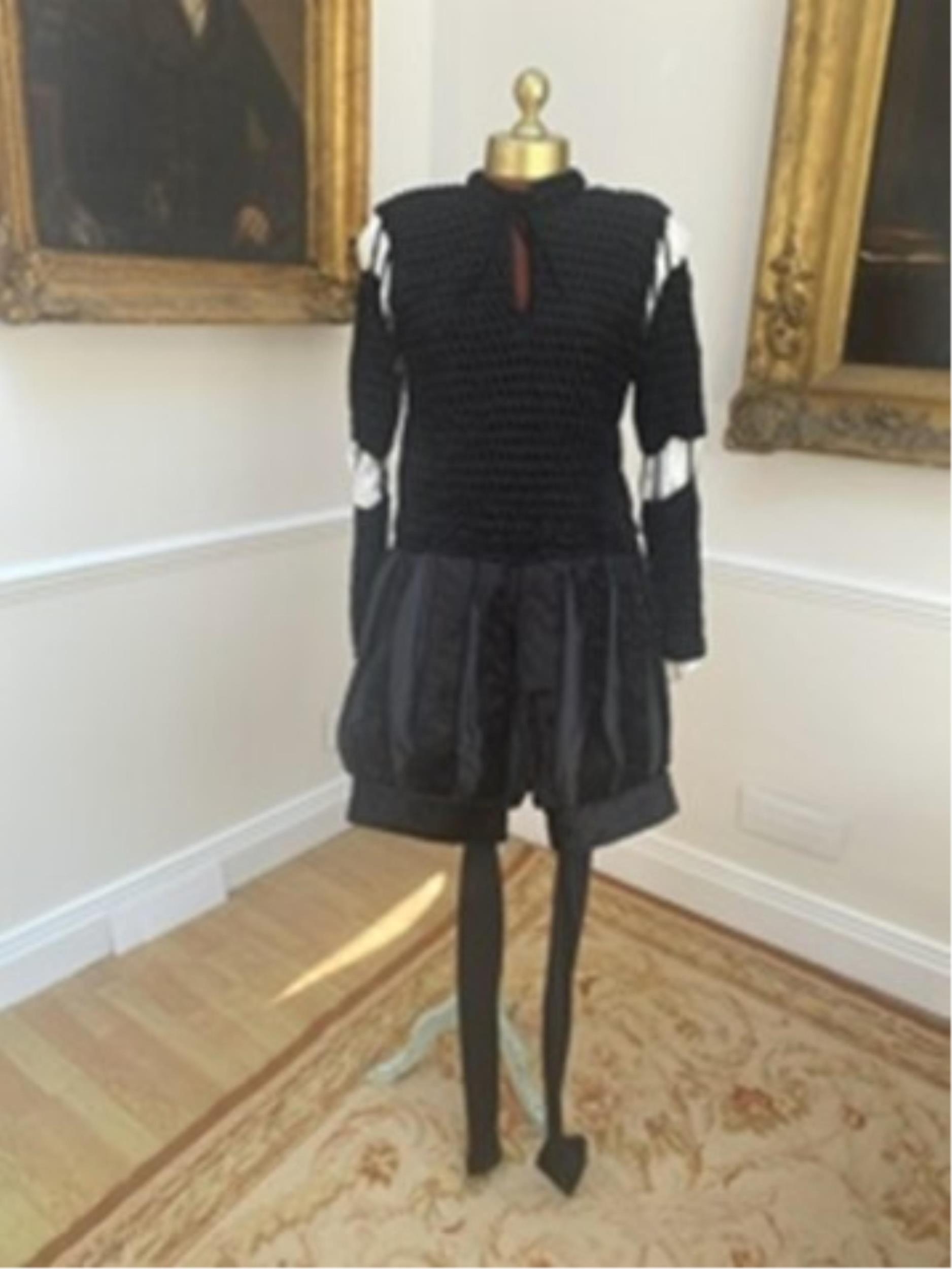 A mens Elizabethan style tunic and pants, with tights and cod-piece. Size Small / Medium