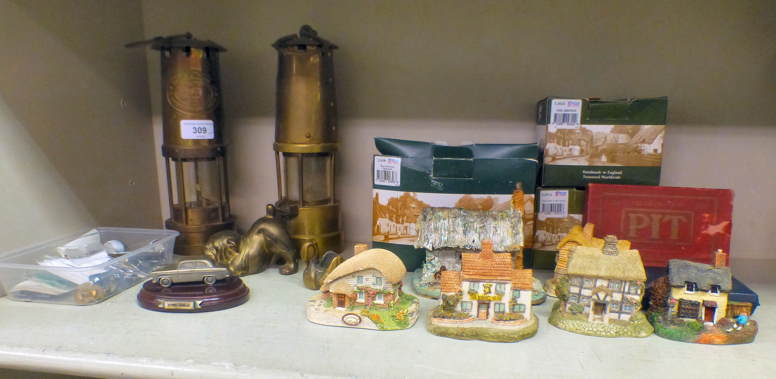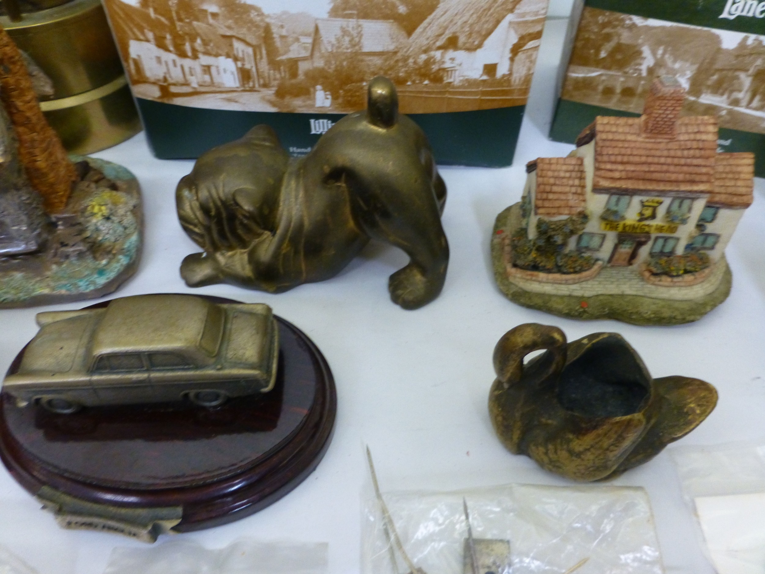 A mixed lot: to include a Thomas & Williams brass Tilley lamp 10"h