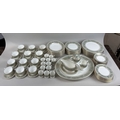 Includes dinner plates, side plates, serving dishes, gravy boat and saucer as well as tea cups and saucers, coffee cups, sugar pot and milk jug.