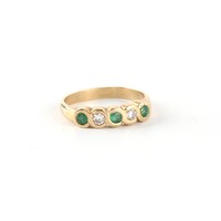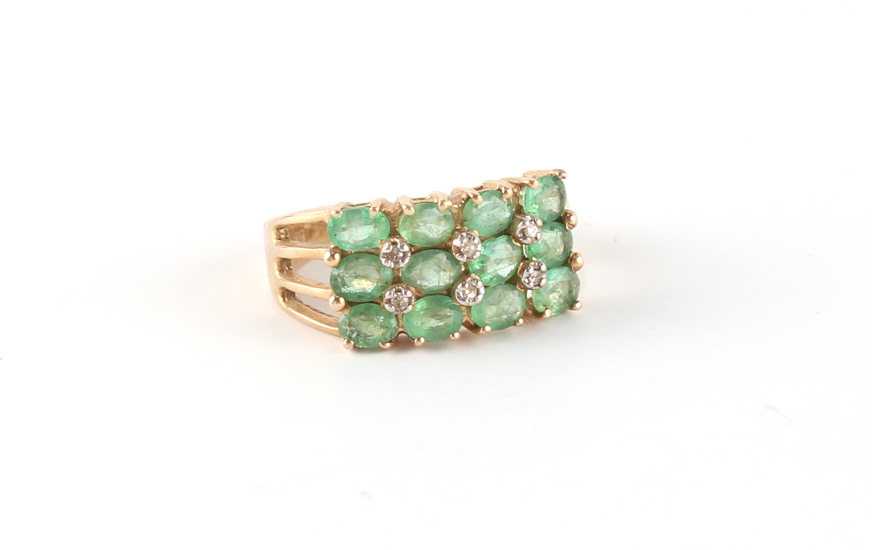 Property of a gentleman - a 10ct yellow gold emerald & diamond three row ring, approximately 3.7 grams, size M/N, boxed.