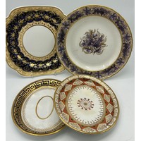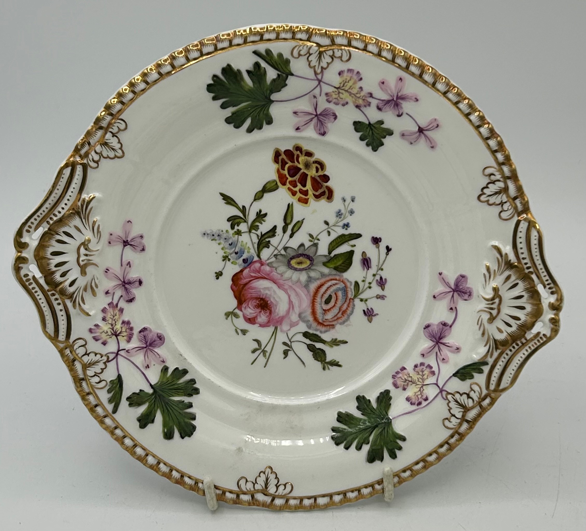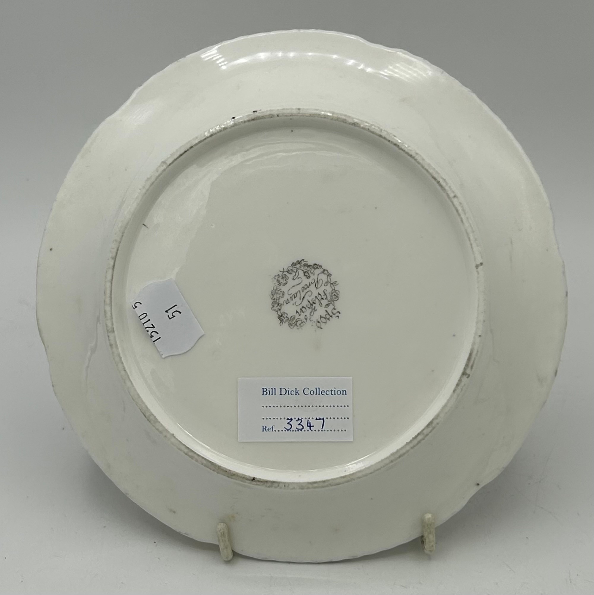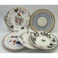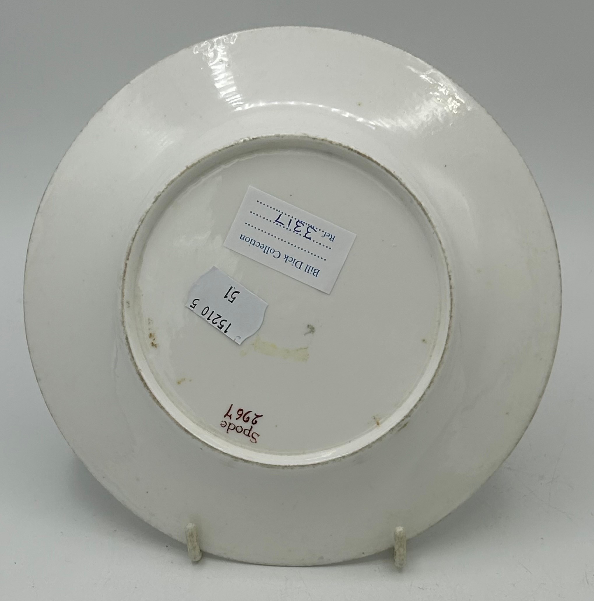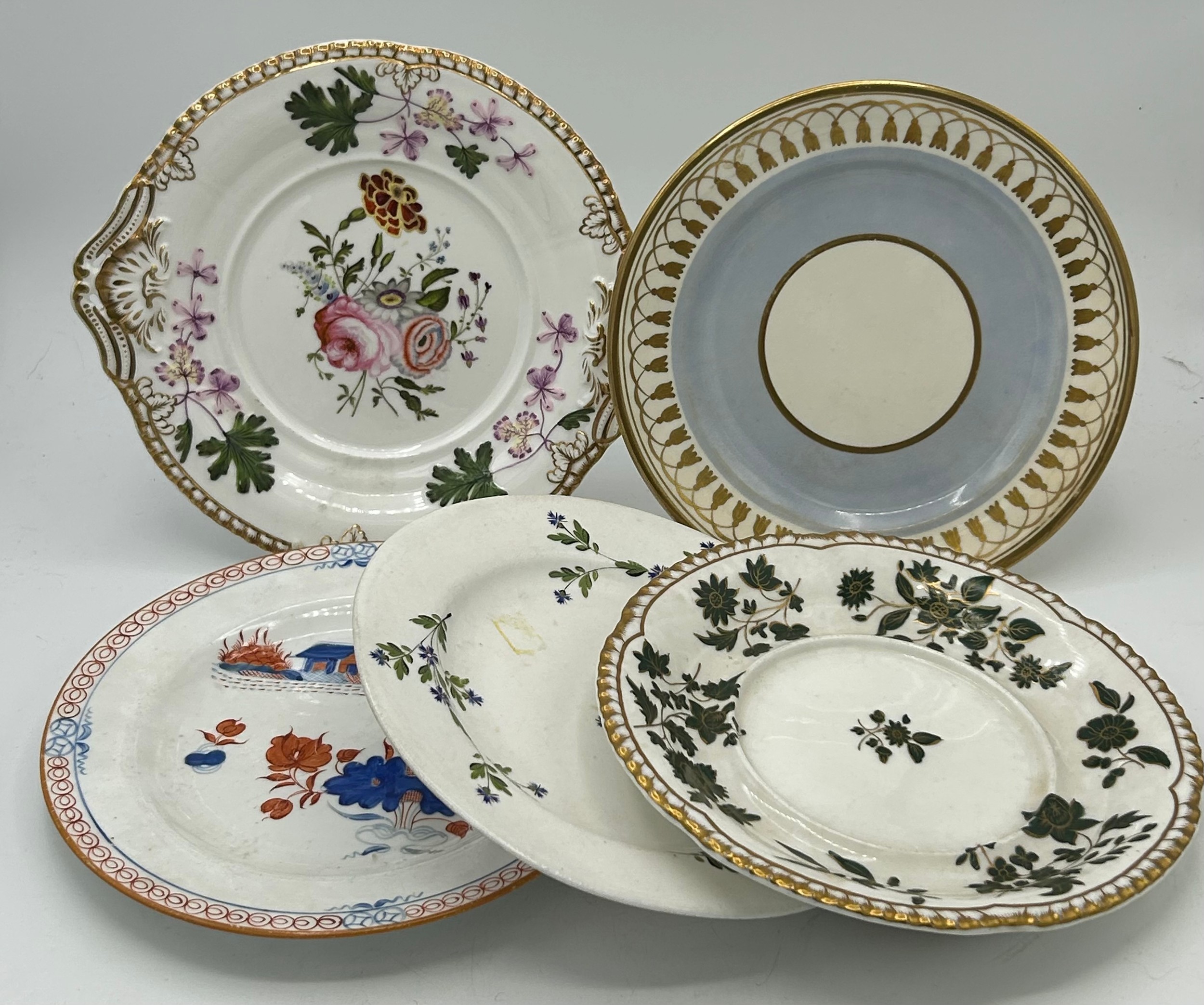 A group of early 19thC Spode hand painted porcelain plates and stands c.1815-25. Largest 21 cm.(5)