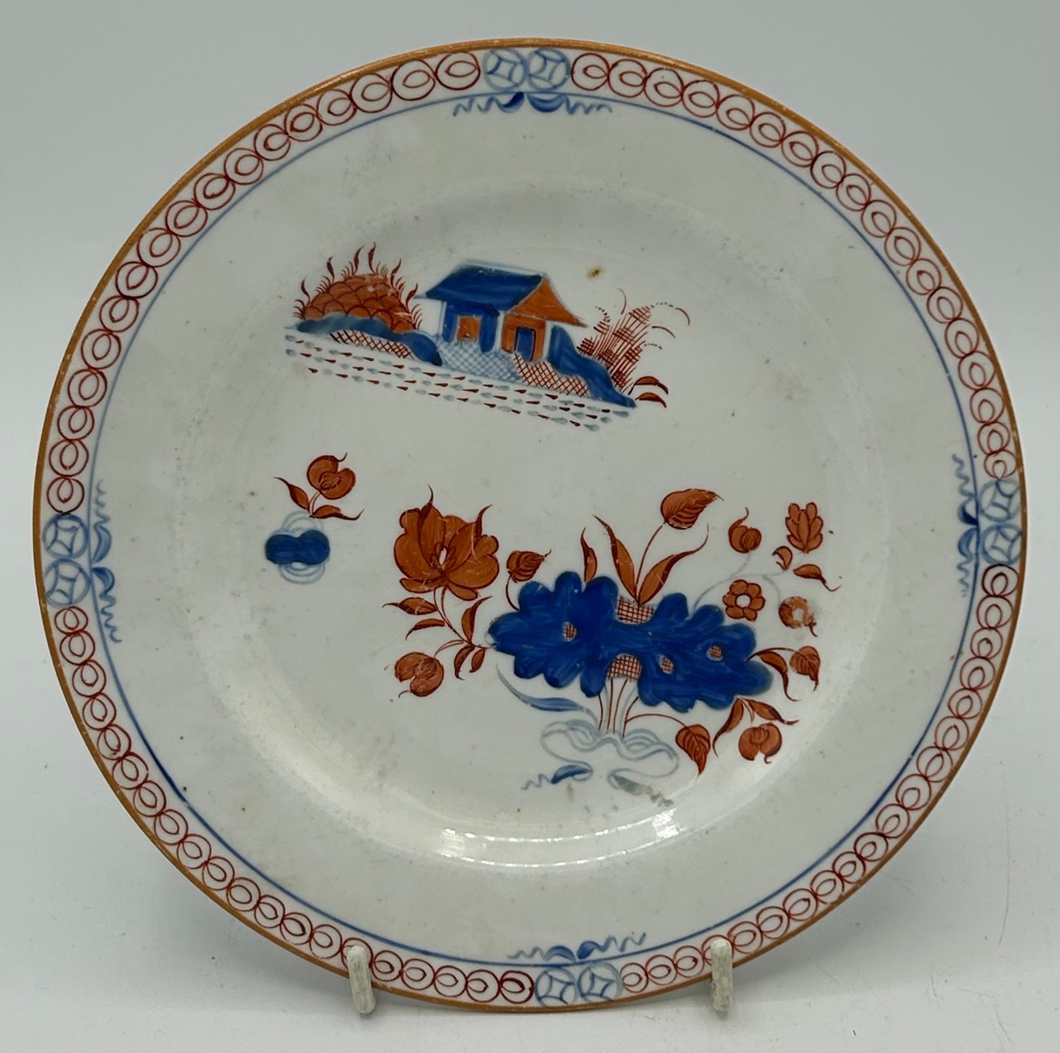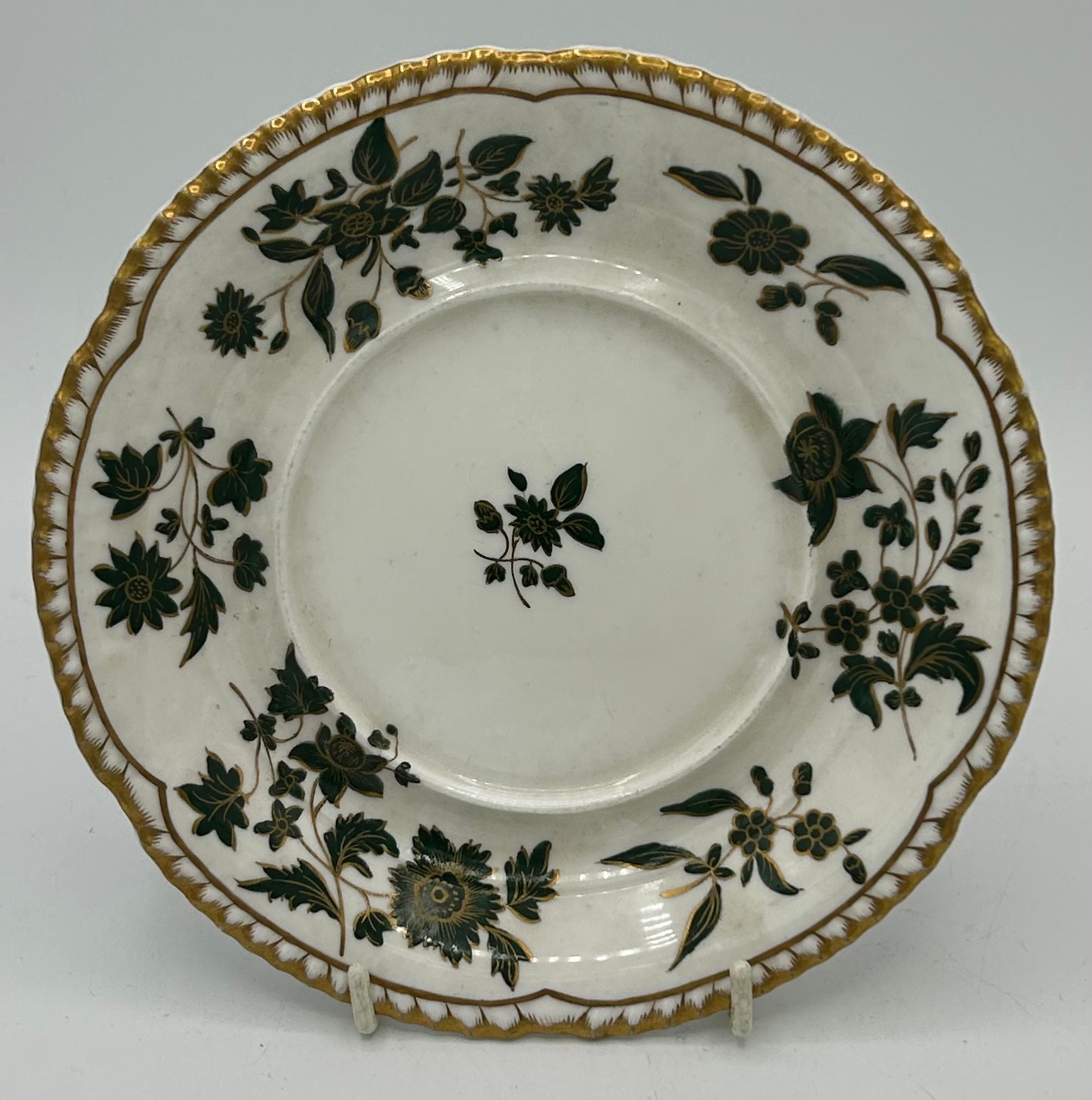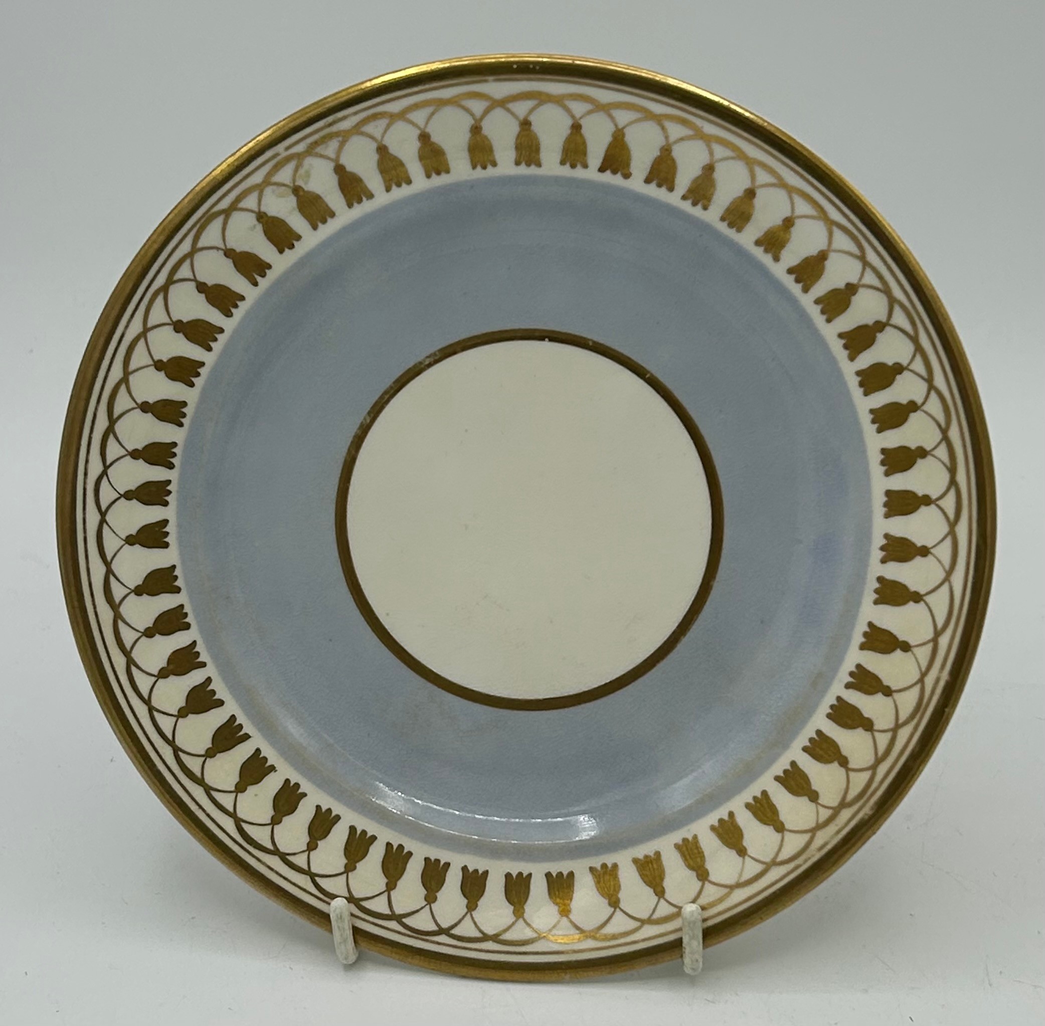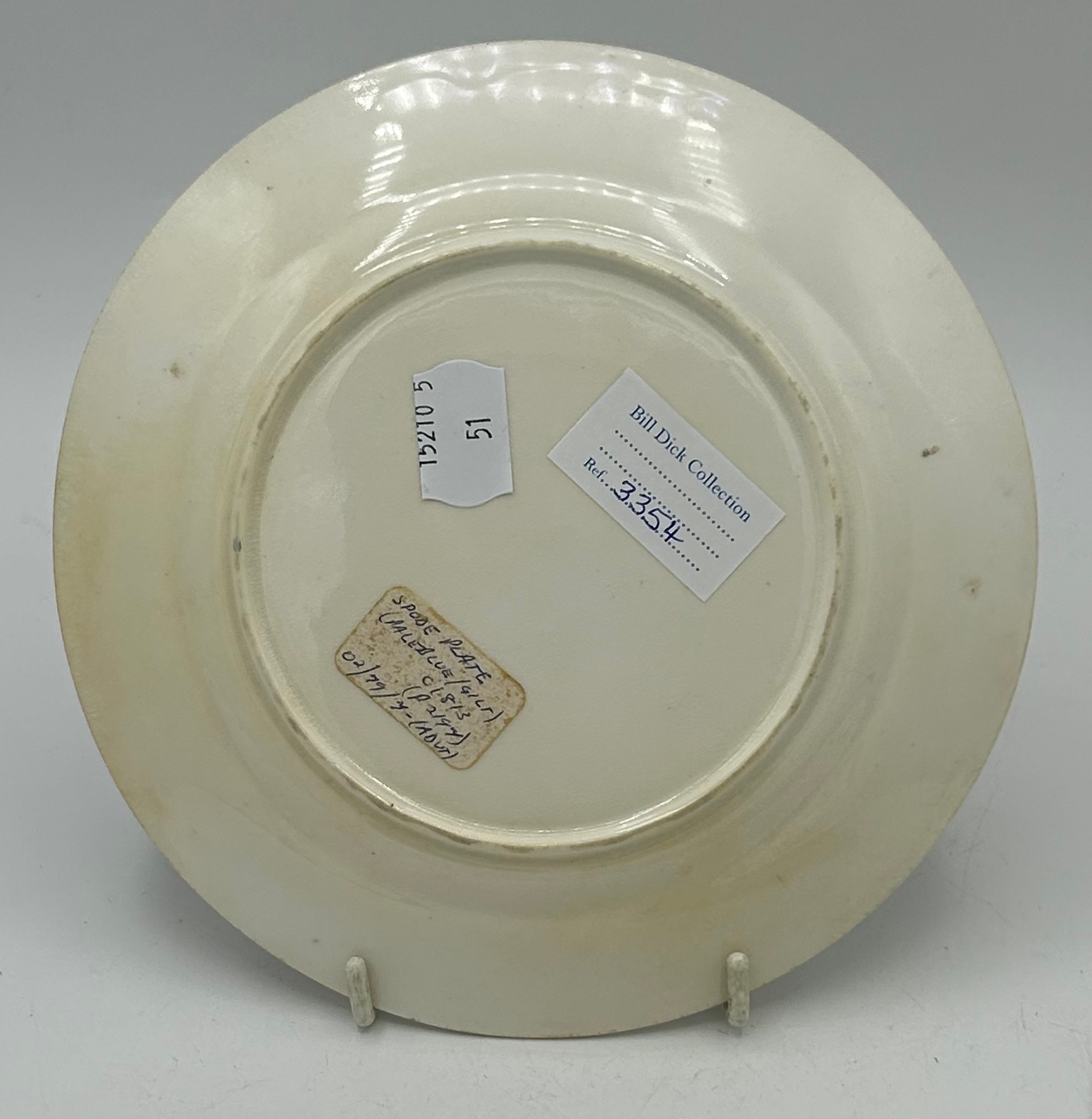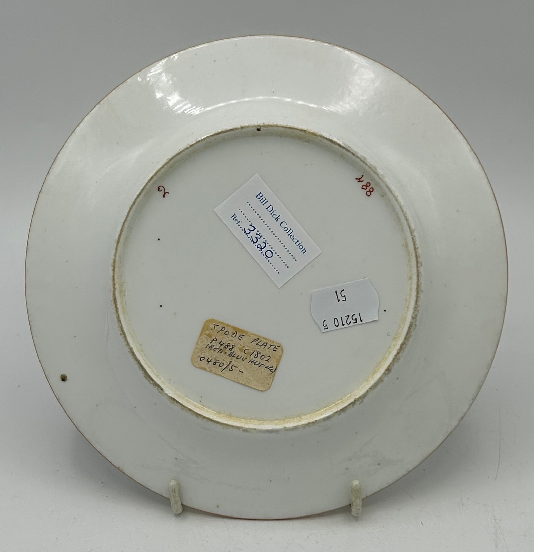A group of early 19thC Spode hand painted porcelain plates and stands c.1815-25. Largest 21 cm.(5)