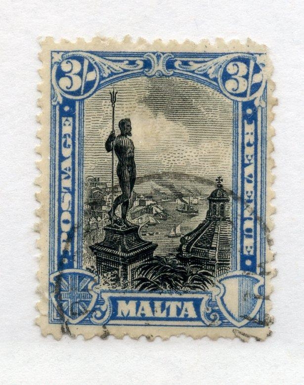 MALTA 1930 3/- black and blue Postage + Revenue fu. SG 207. Cat £70.
