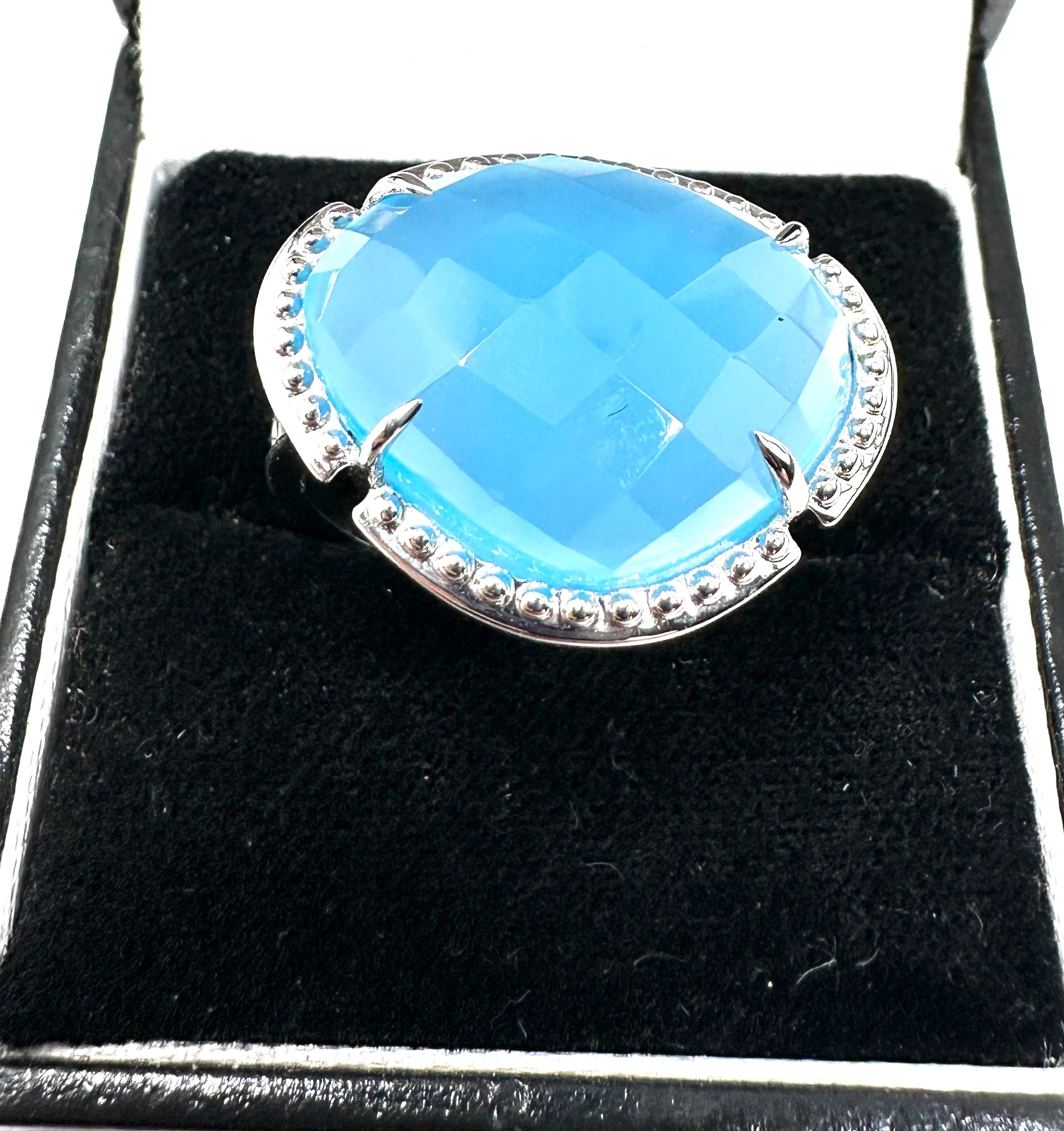 Gempopria Blue Chalcedony Ring in Sterling Silver 12.51cts with c.o.a