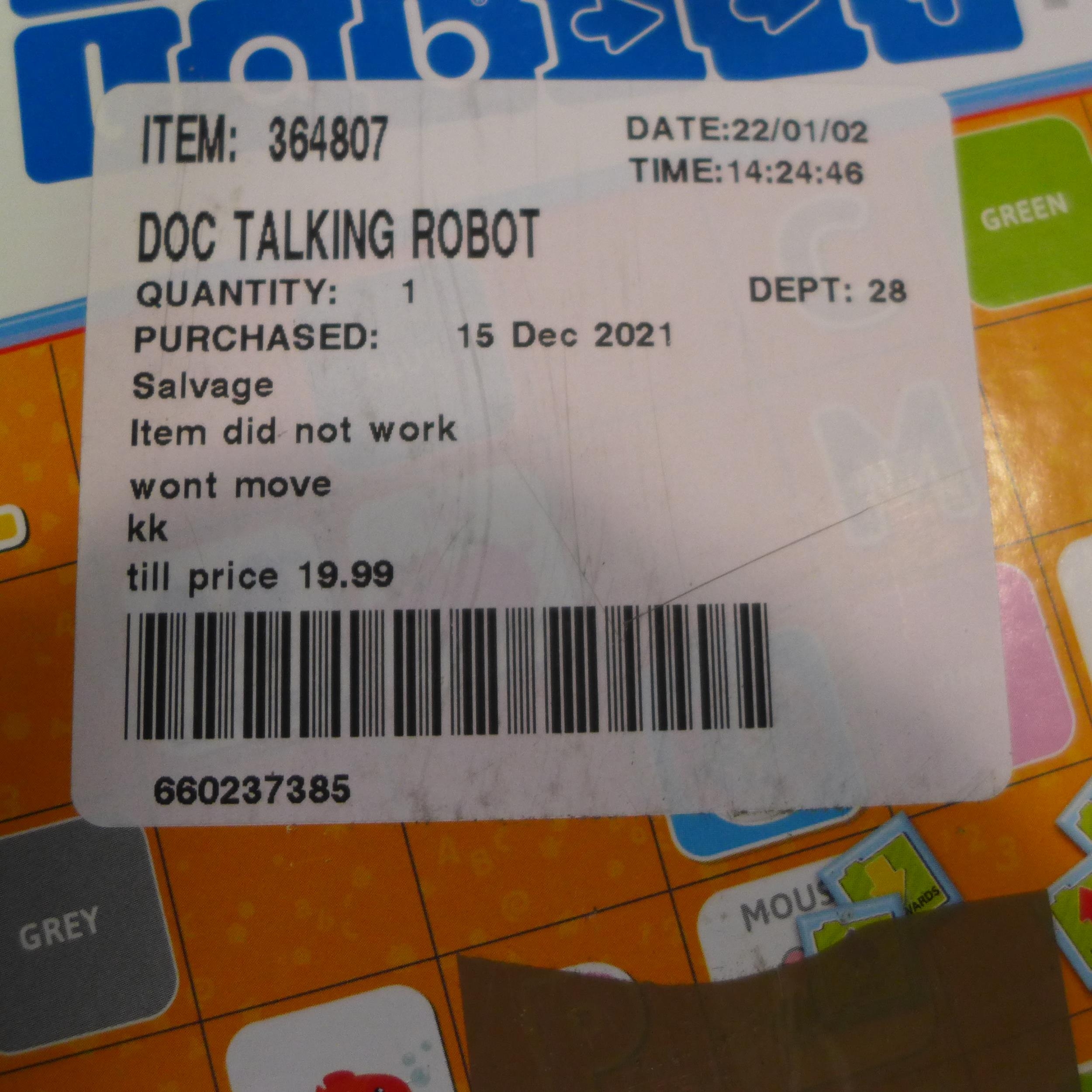 Doc Talking Robot (246 -311)* This lot is subject to ...