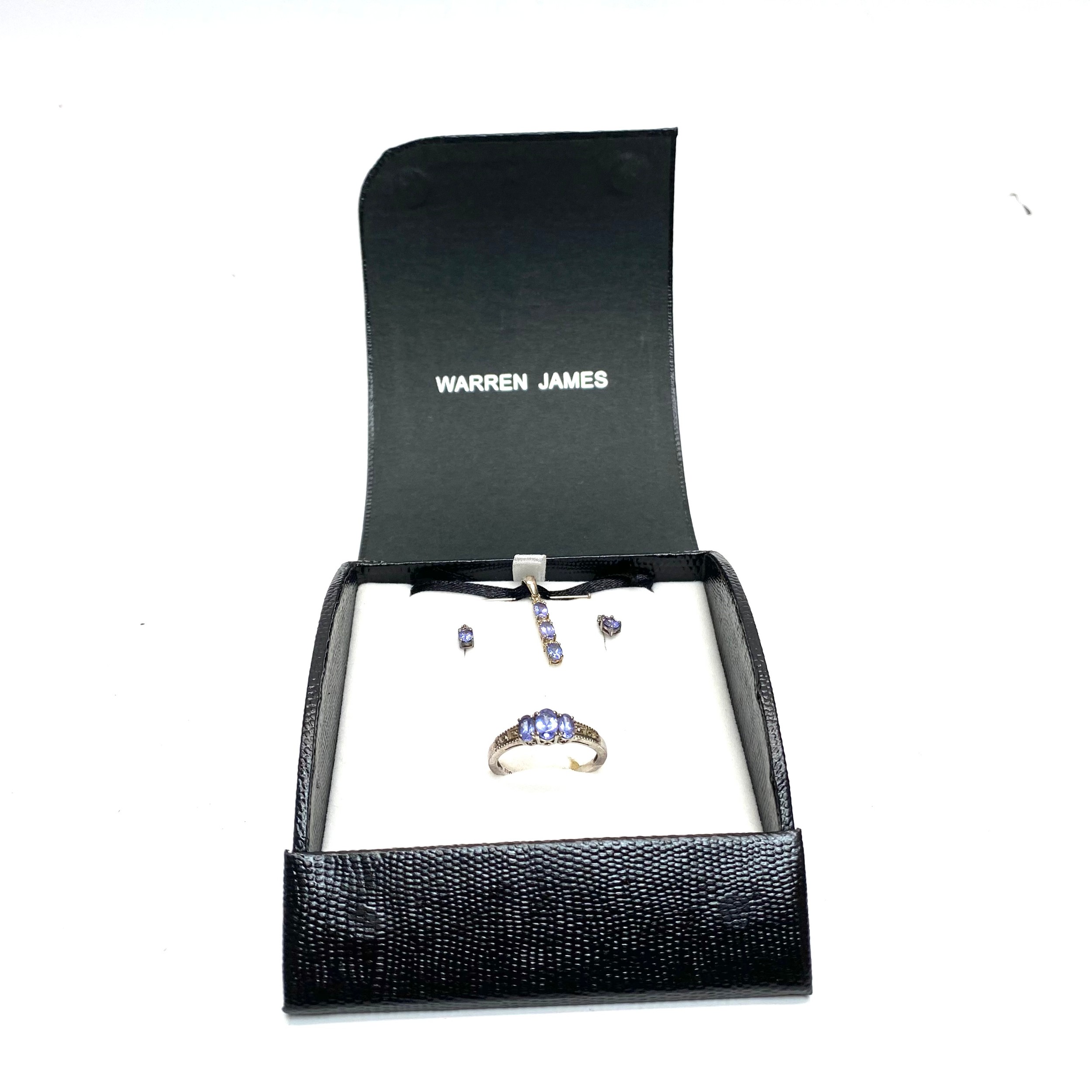 Sterling silver Tanzanite ring, earrings and pendant with chain set. 1.45ct and size U.