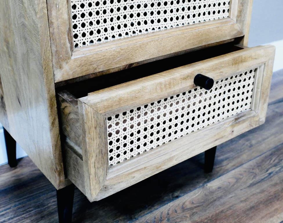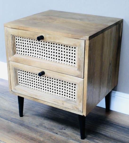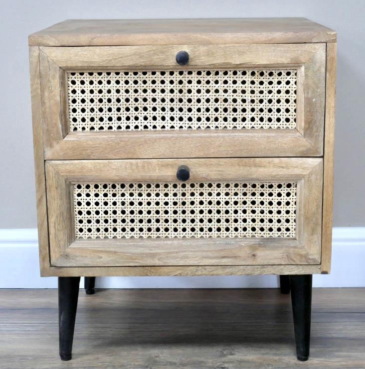 SIDE CABINETS, 54cm high, 45cm wide, 43cm deep, pair, 1960's Danish style, canework panels to drawer fronts (2)