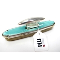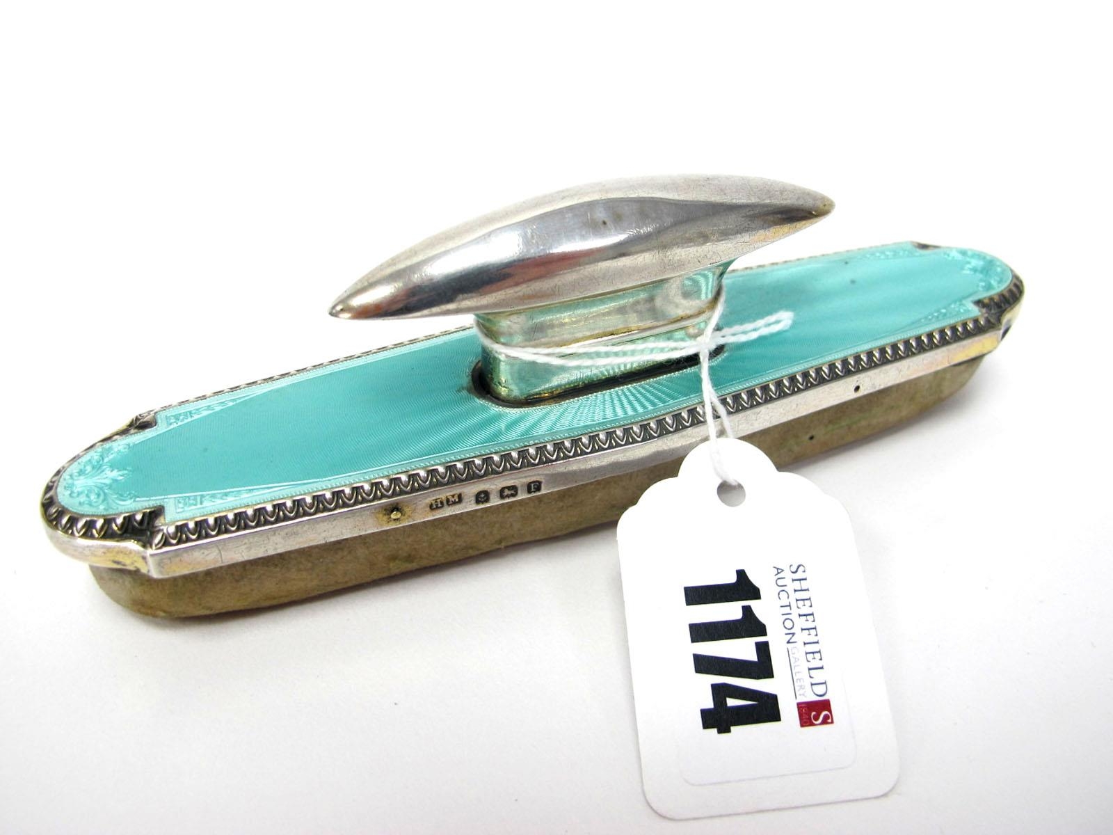 A Large Hallmarked Silver and Enamel Mounted Nail Buffer, Henry Matthews, Birmingham 1930, highlighted in turquoise, 15.5cm long.