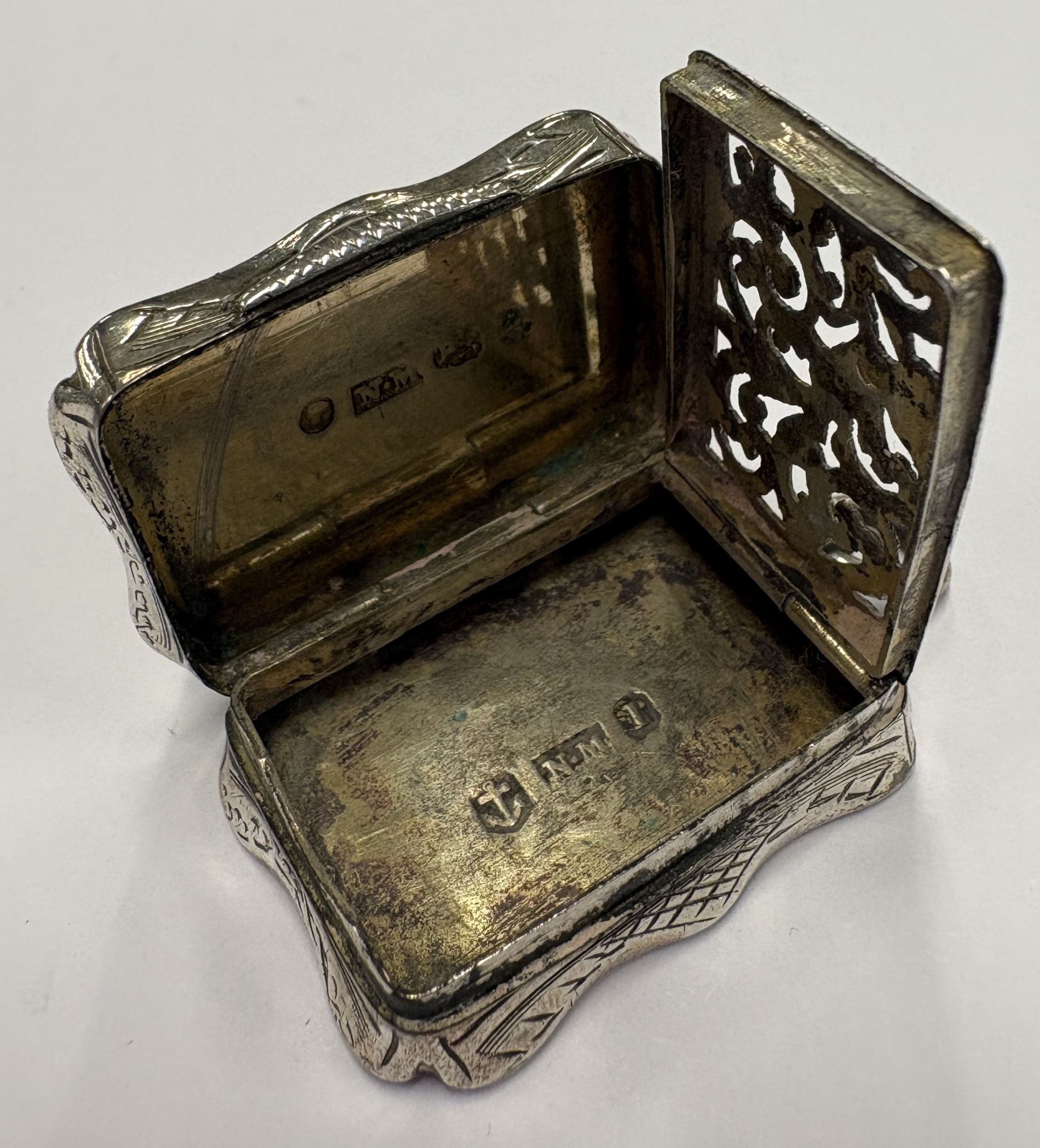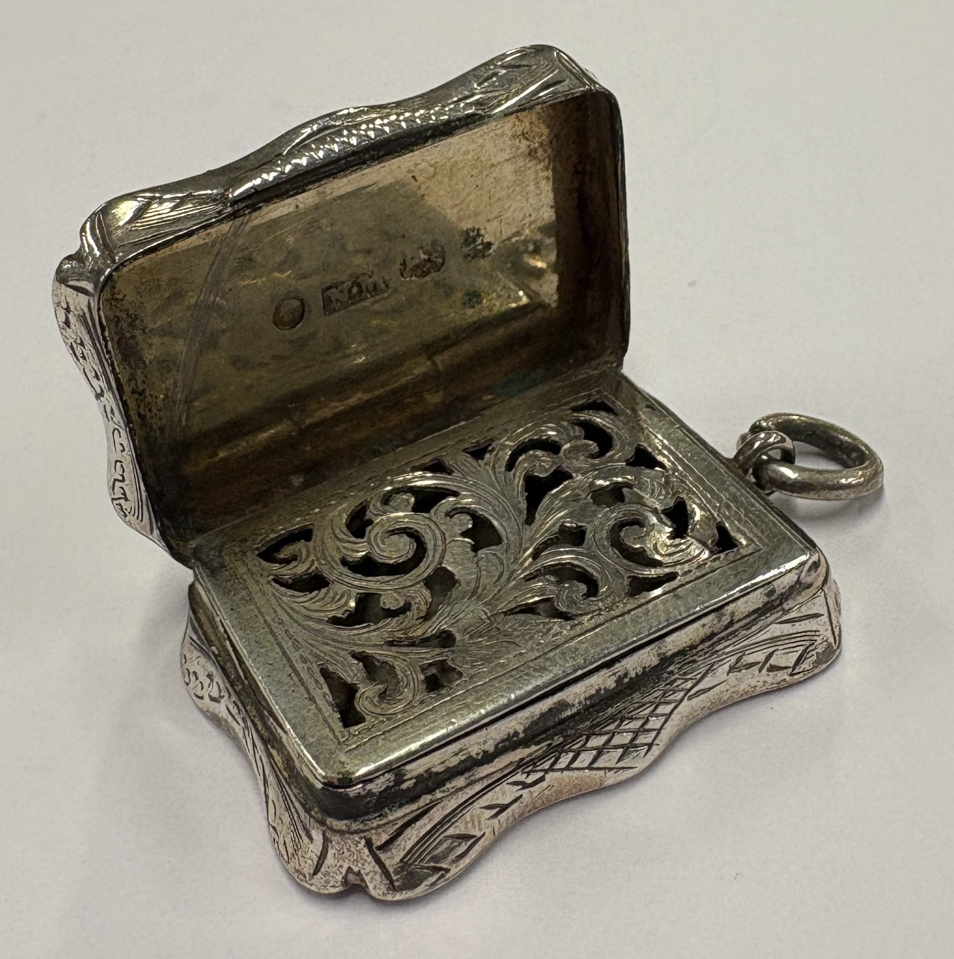 A Victorian silver vinaigrette. Birmingham 1857. By Nathaniel Mills. Approx. 20 grams. Est. £150 - £200.