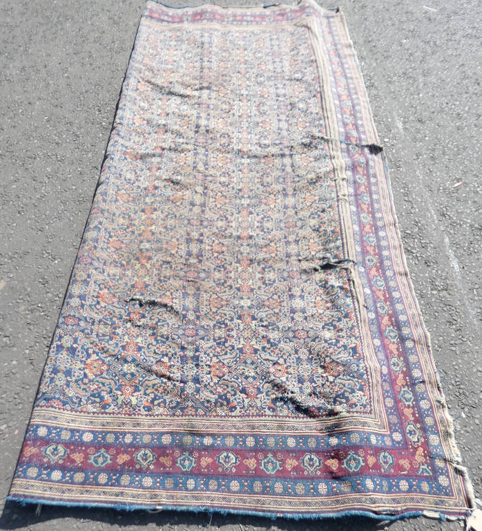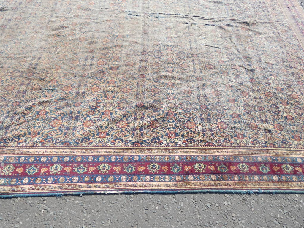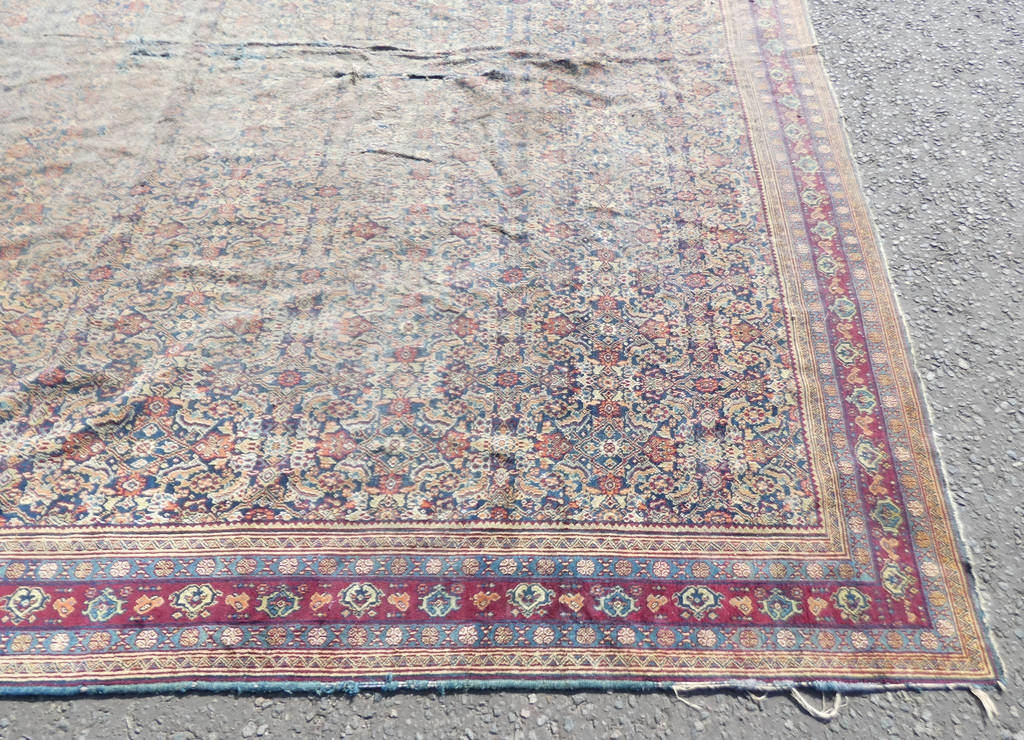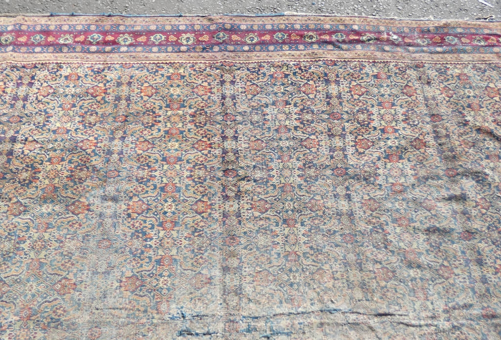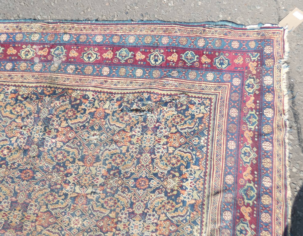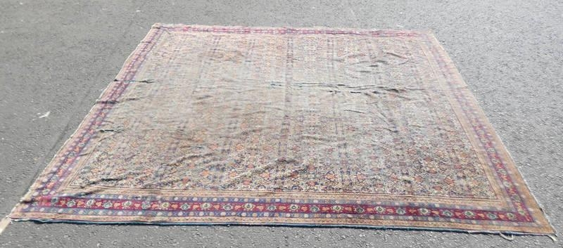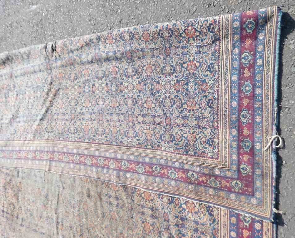 MIDDLE EASTERN CARPET WITH MAROON, BLUE & GOLD PATTERN, 358 X 306 CM