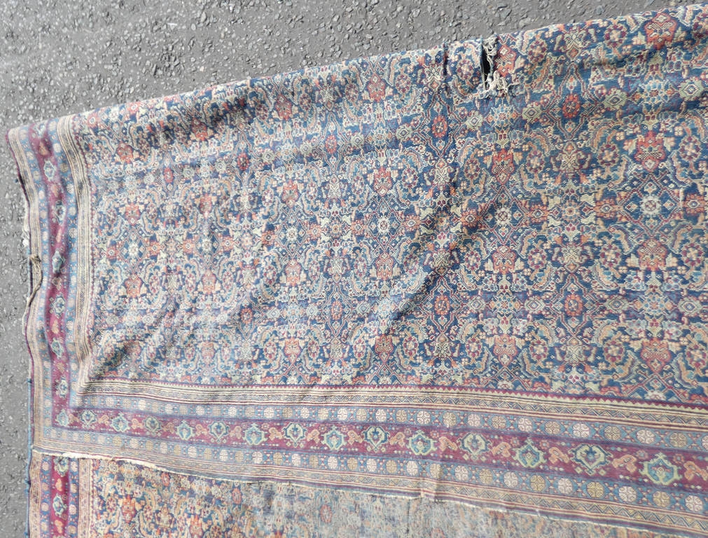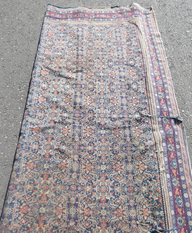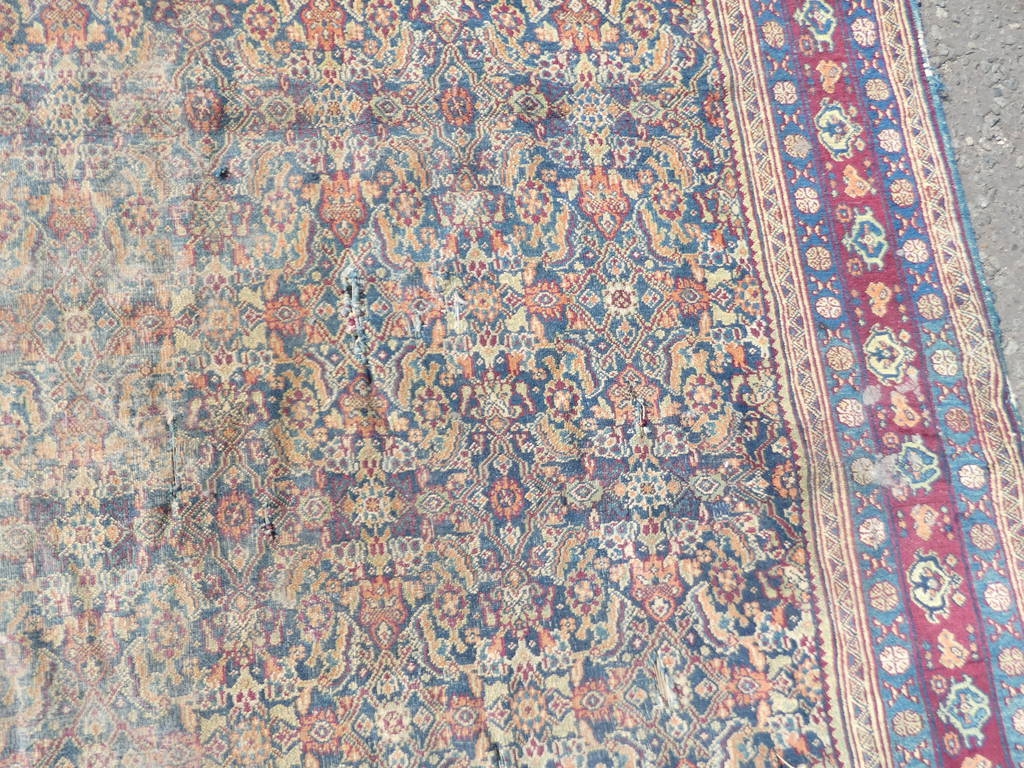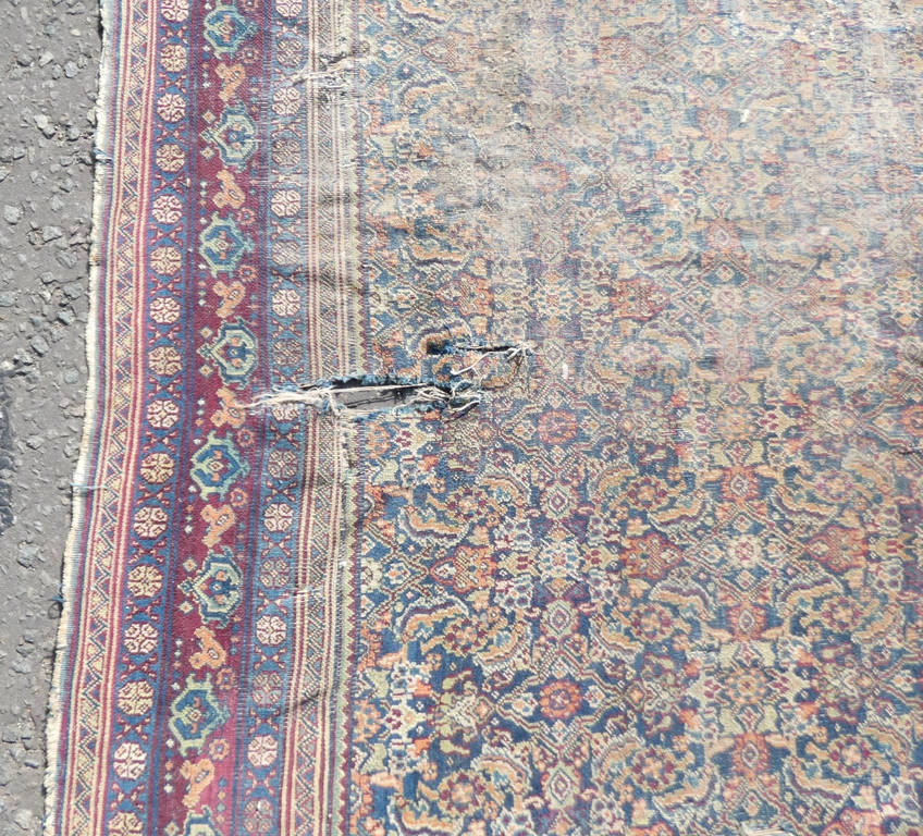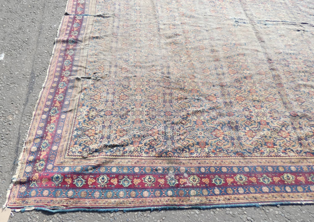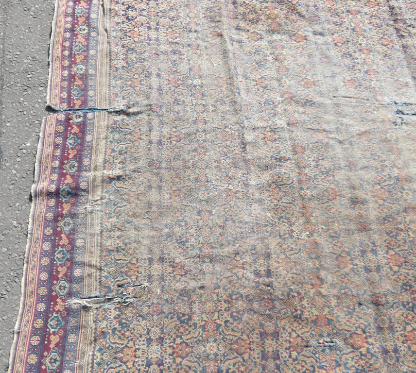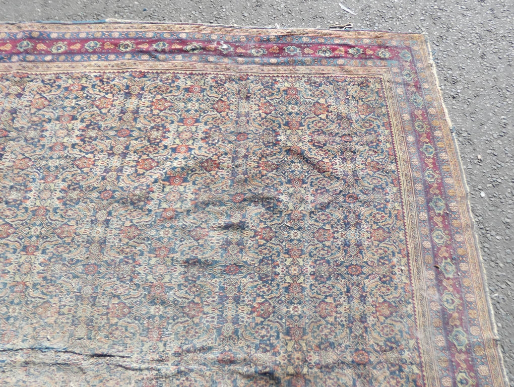 MIDDLE EASTERN CARPET WITH MAROON, BLUE & GOLD PATTERN, 358 X 306 CM