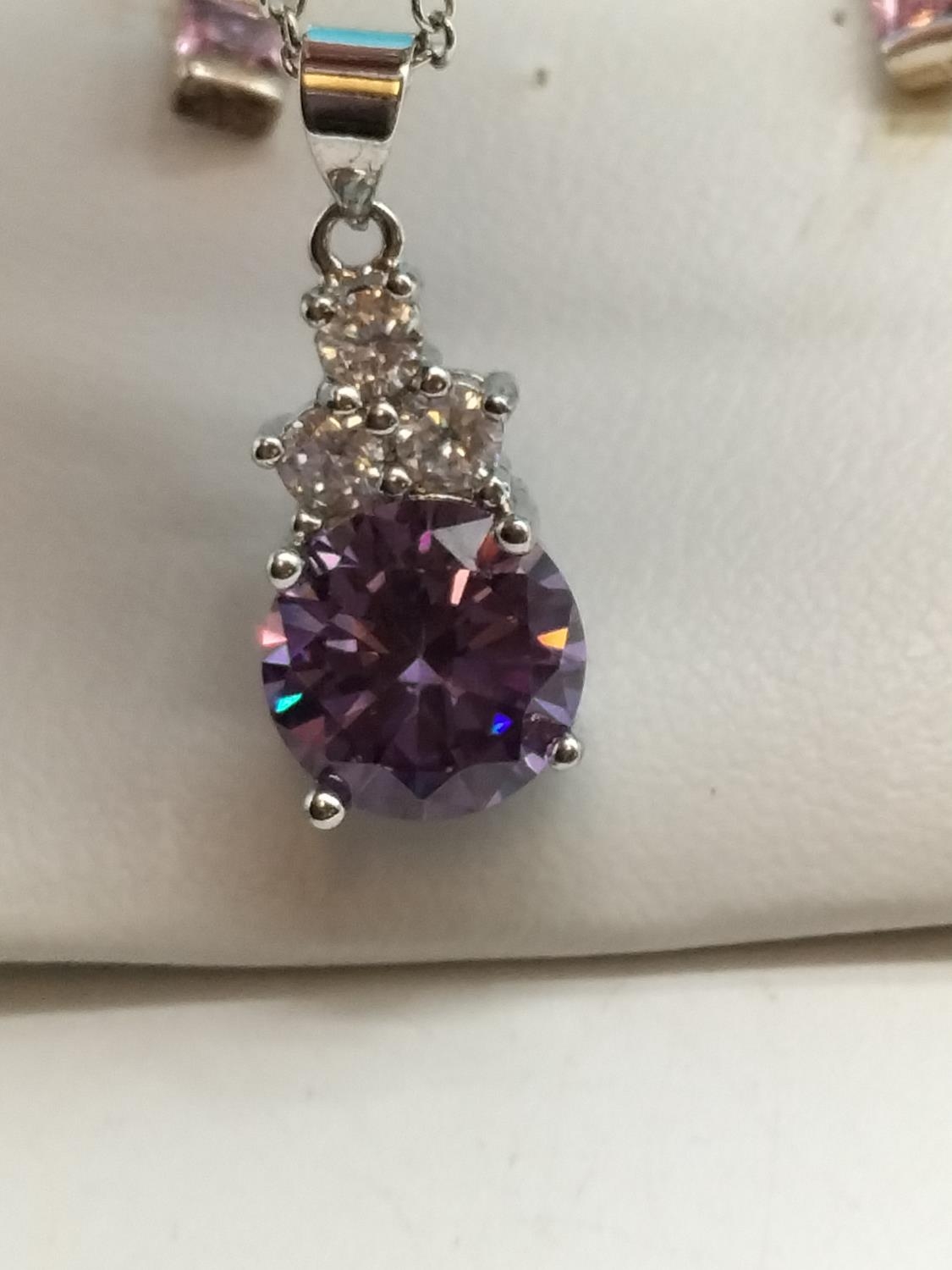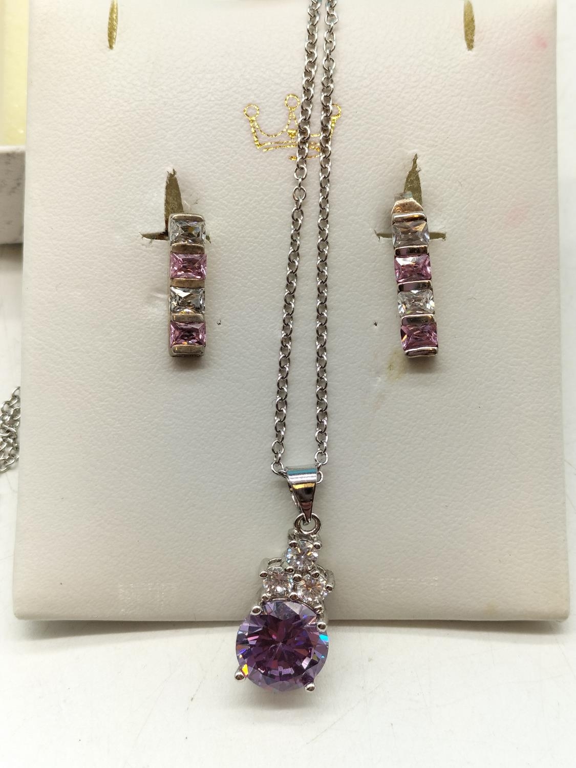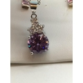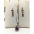 925 Silver Necklace with Amethyst Pendant plus Pair of Earrings.