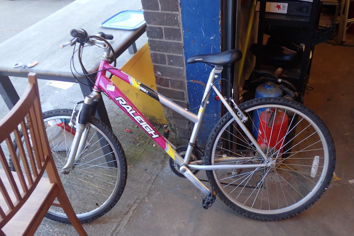 Raleigh off road mountain bike, 18 inch frame, 21 inch wheel. Not available for in-house P&P