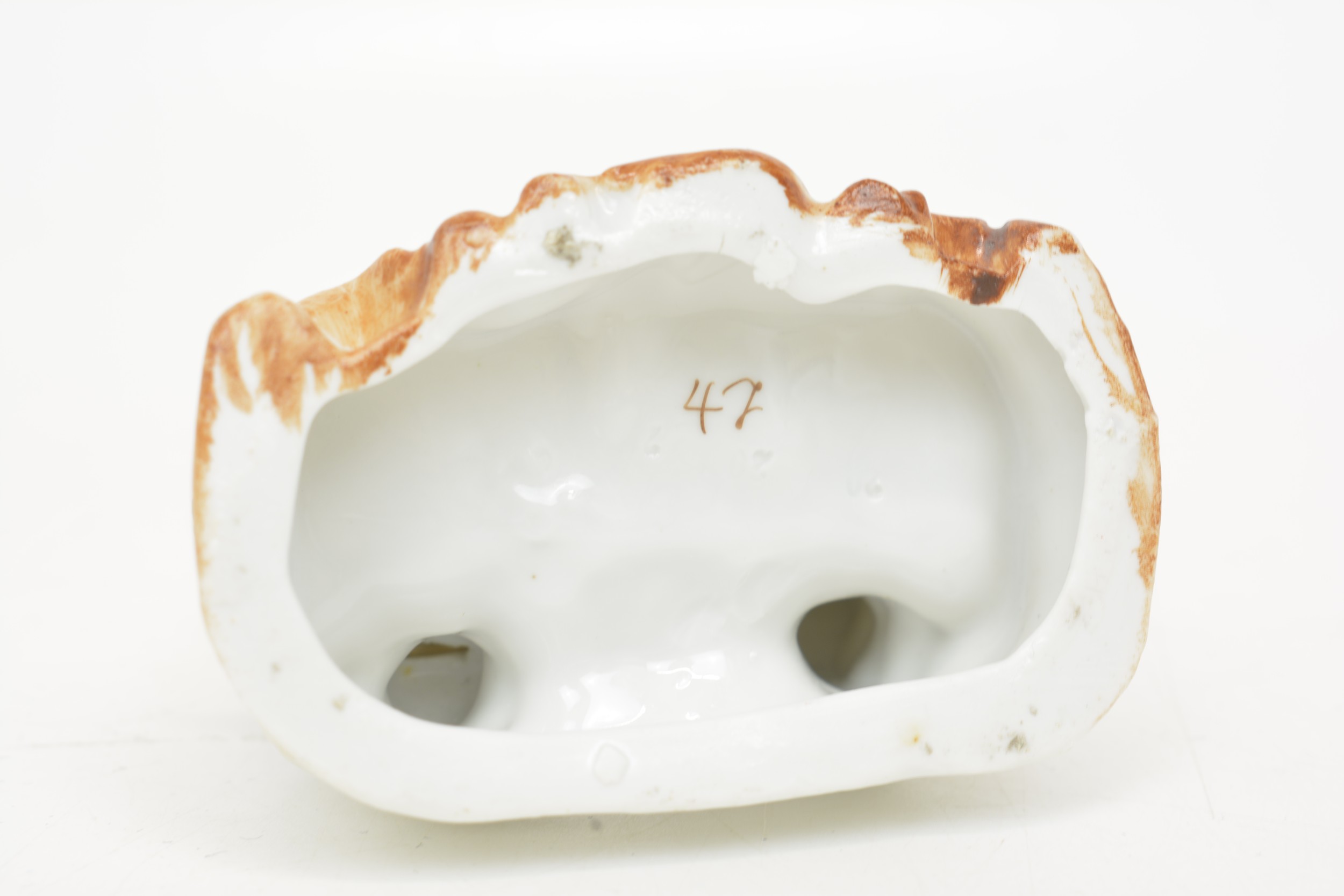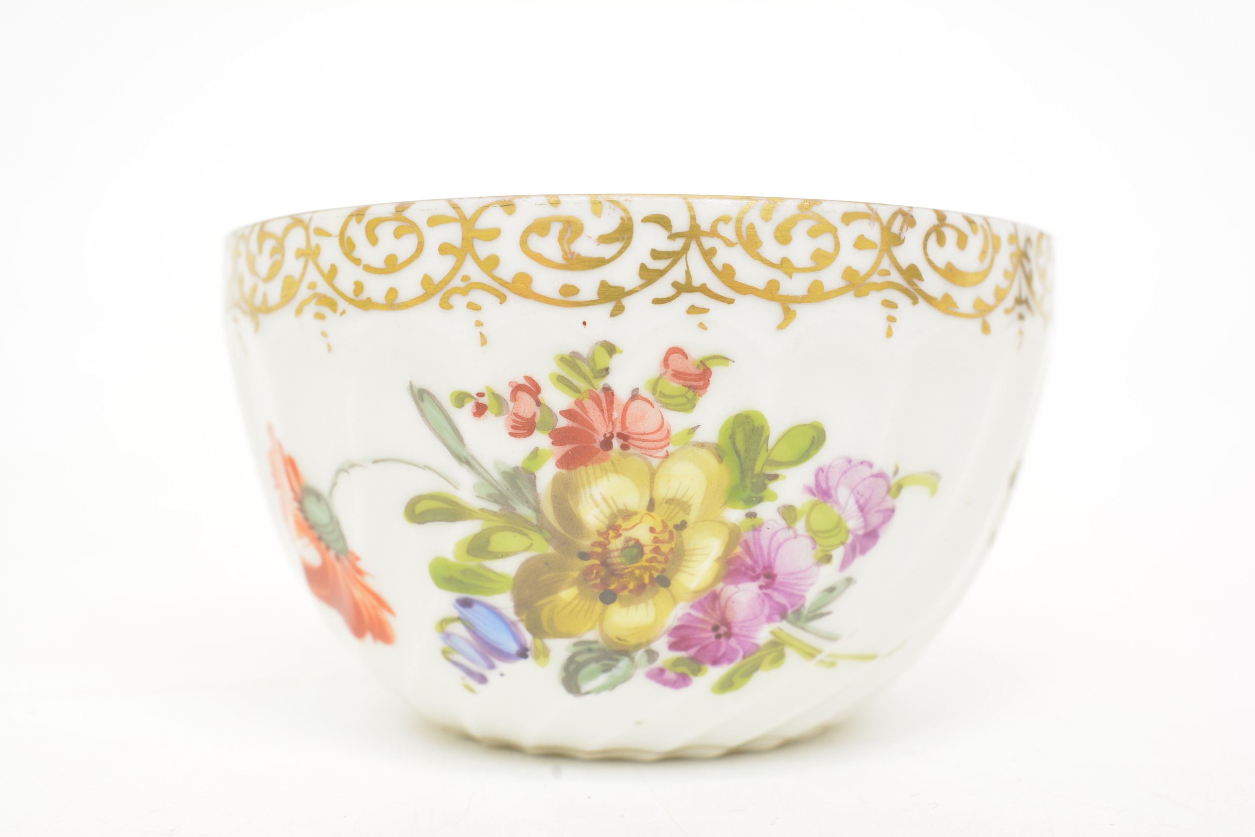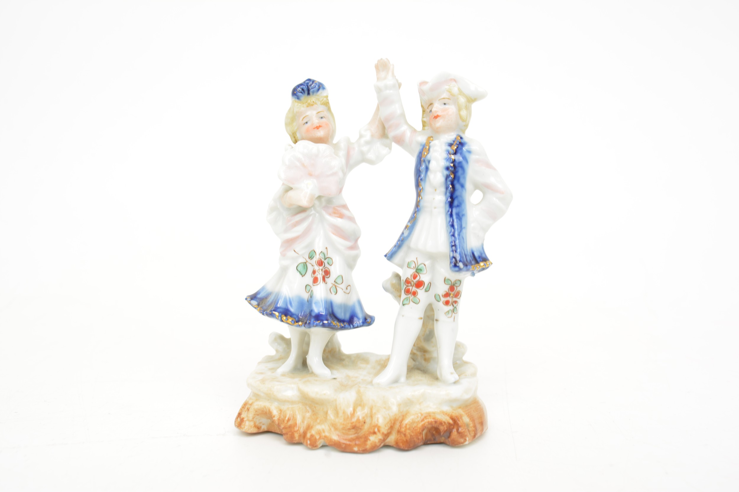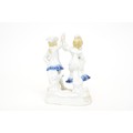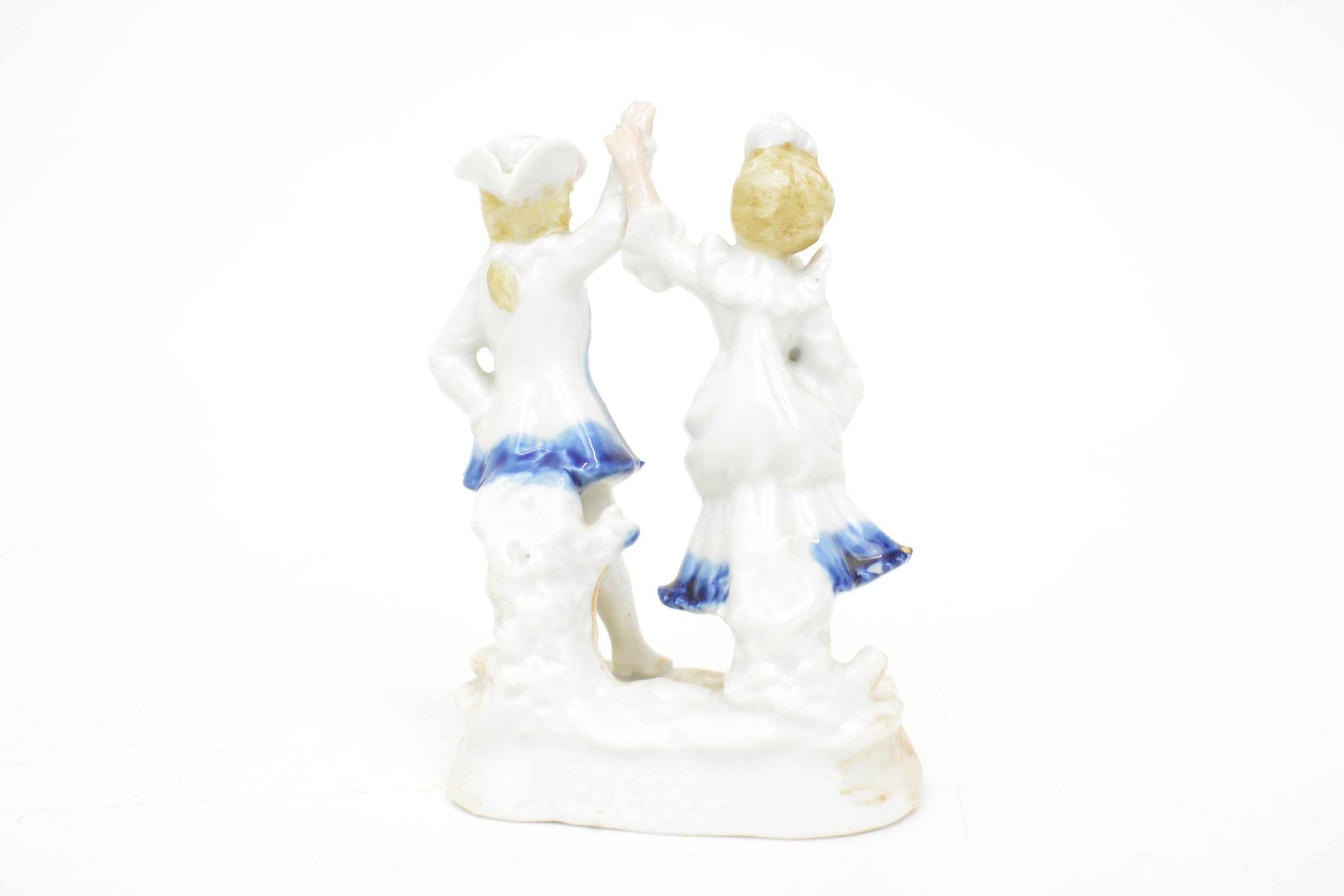 hairline crack to cup. Nibbles to porcelain figures.