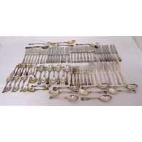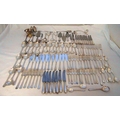 A quantity of silver plated flatware to include knives, forks, spoons, soup spoons, fish eaters and a Mappin and Webb sauce boat