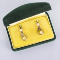 A pair of Mikimoto pearl earrings, the white metal oval openwork drop encompassing pearl, surmounted by further pearl, with screw fittings stamped 'M Silver' 2.5cm long, gross weight 3gms, within fitted Mikimoto box (at fault)
