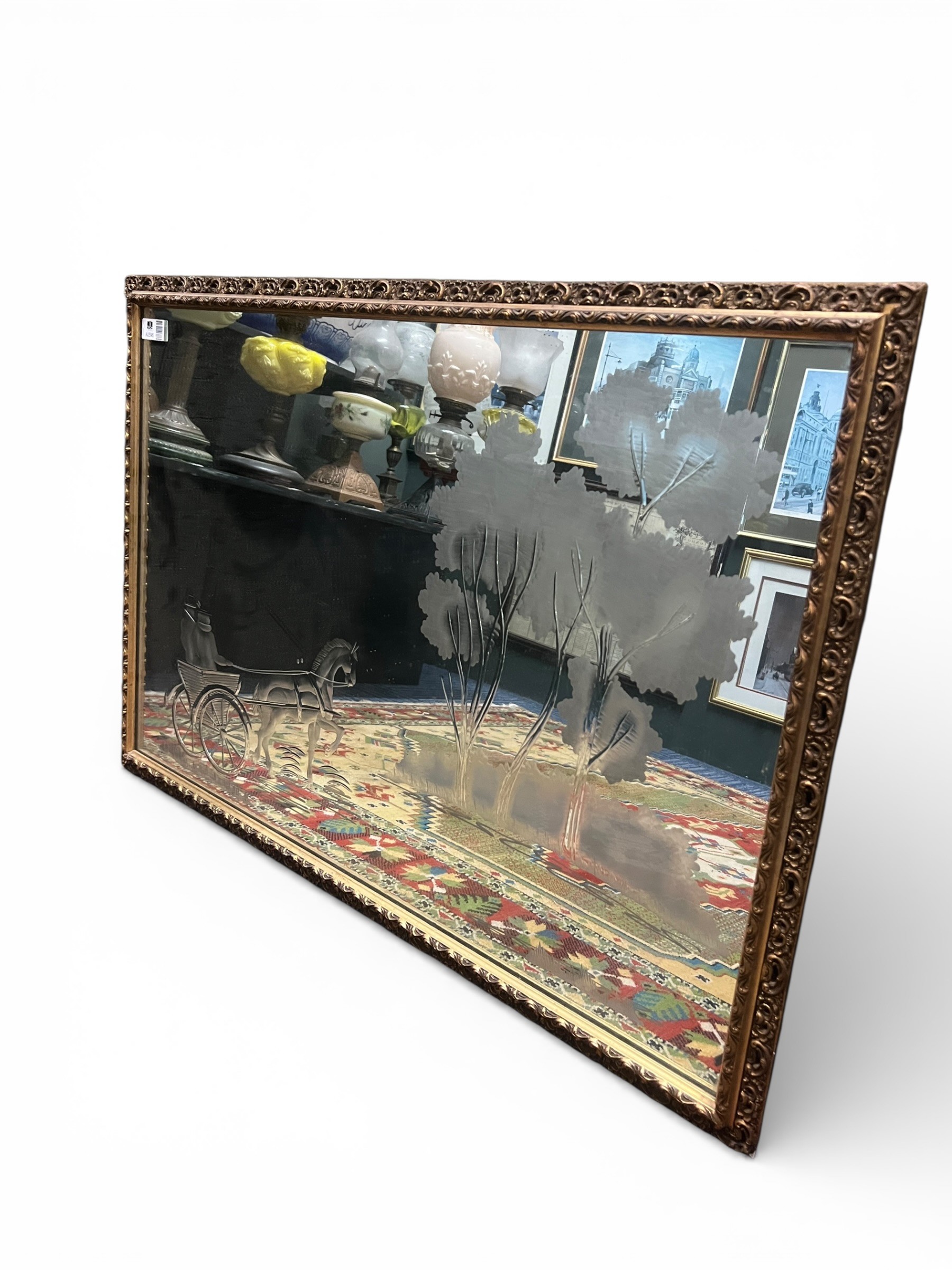 Etched Glass Mirror with Wagon and Tree Scene – 68cm x 98cm