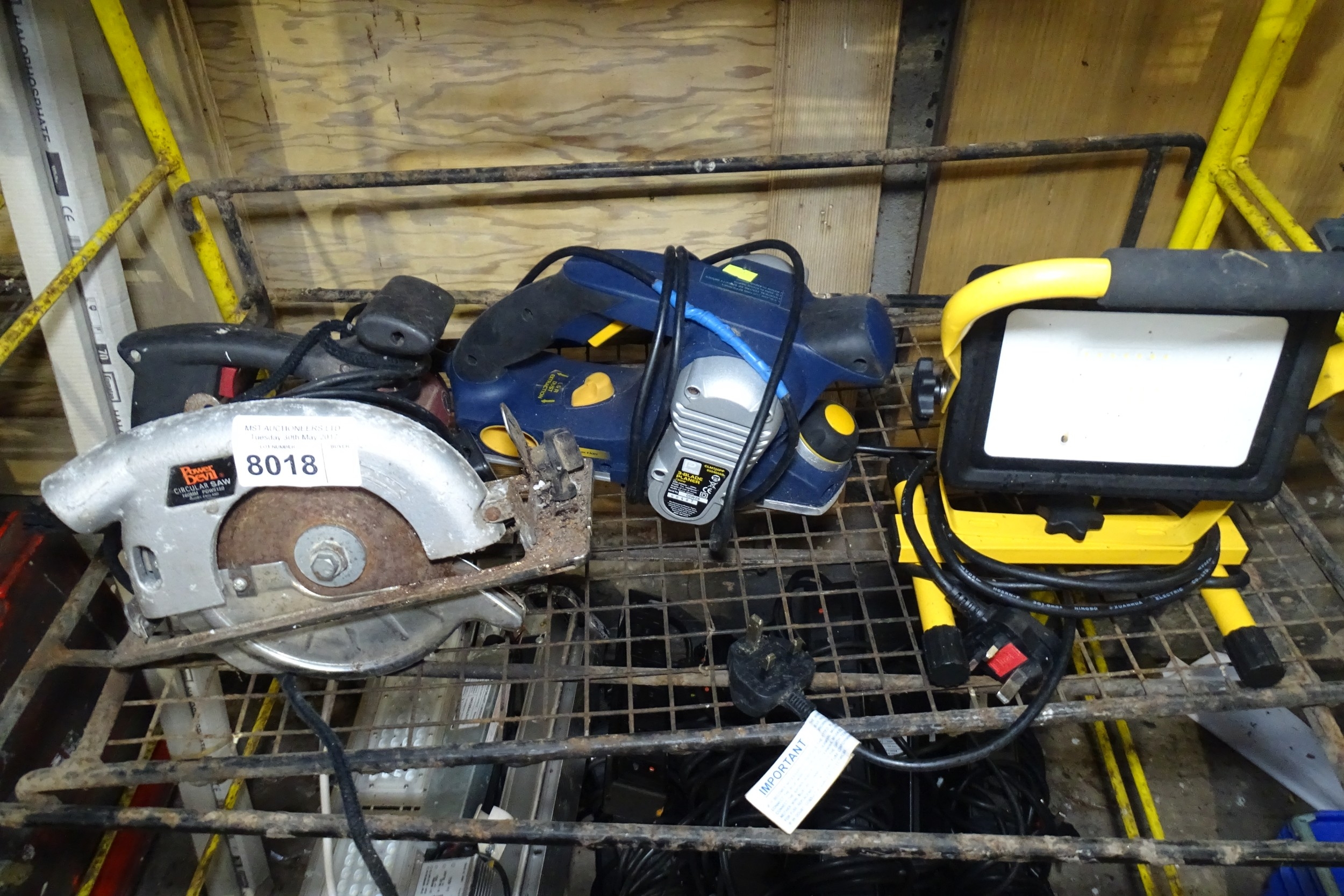 1 x circular saw, 1 x power plane and 1 x work light - all are 240v