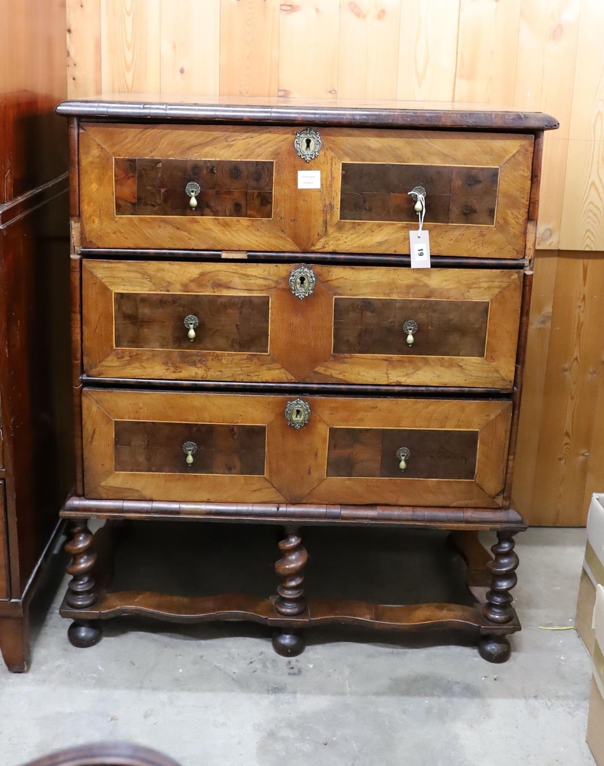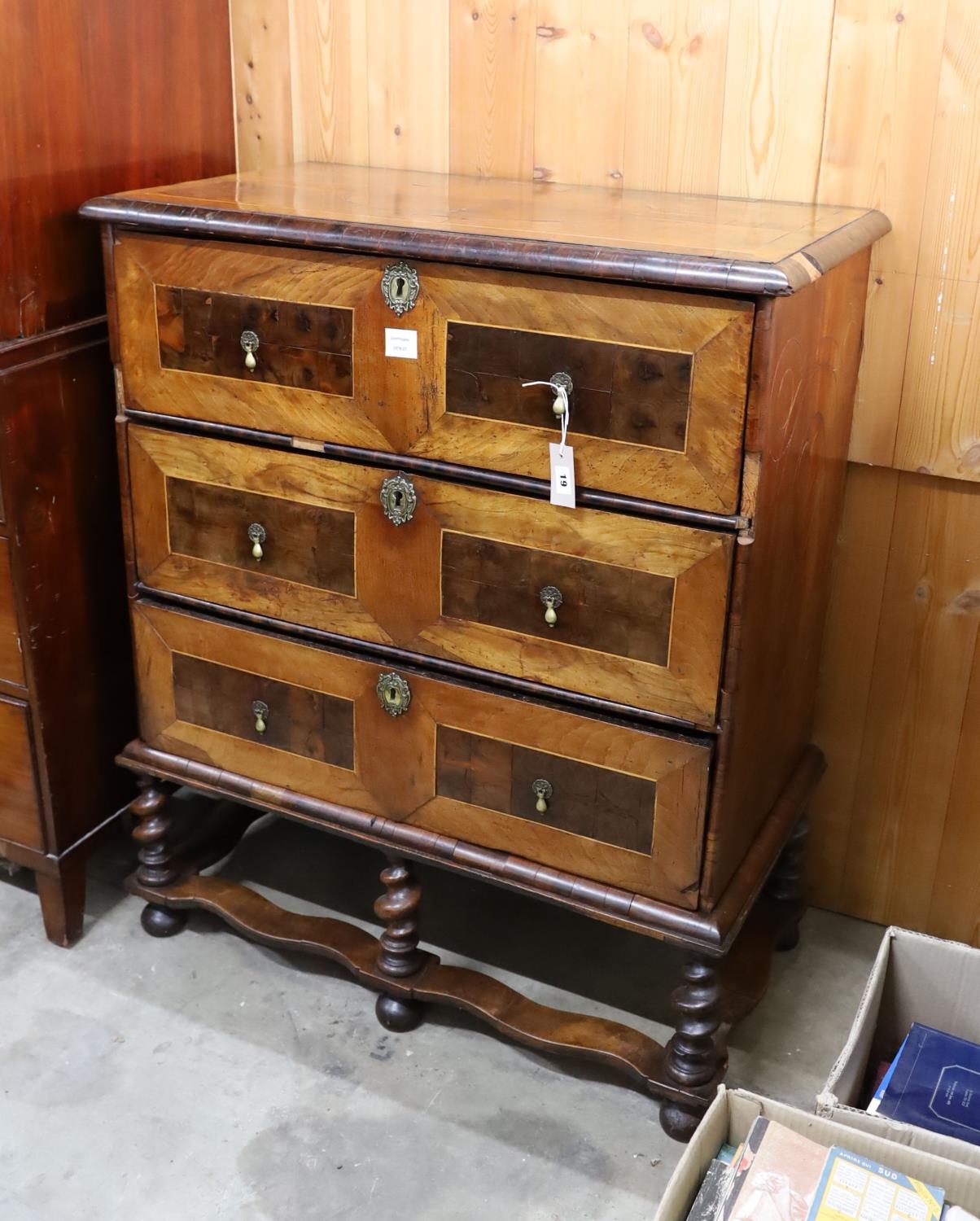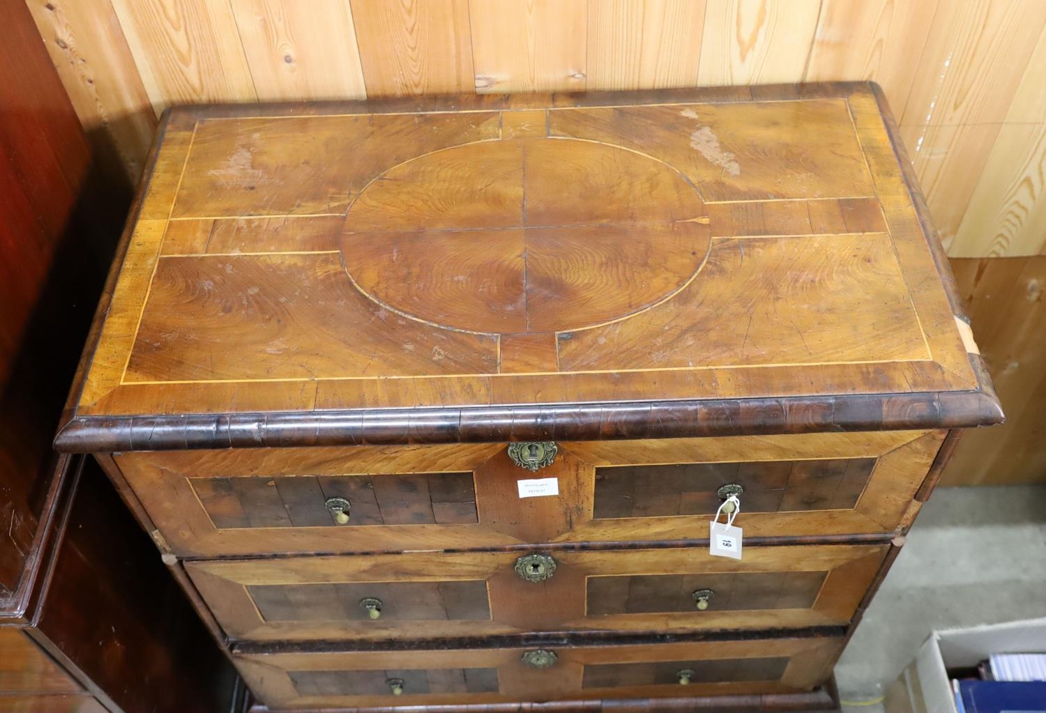 An early 18th century walnut chest on stand, width 90cm, depth 50cm, height 112cm
