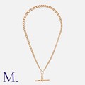 An Antique Gold Curb Chain with T-Bar in 9K rose gold, with solid curb links. Marked for 9ct gold.