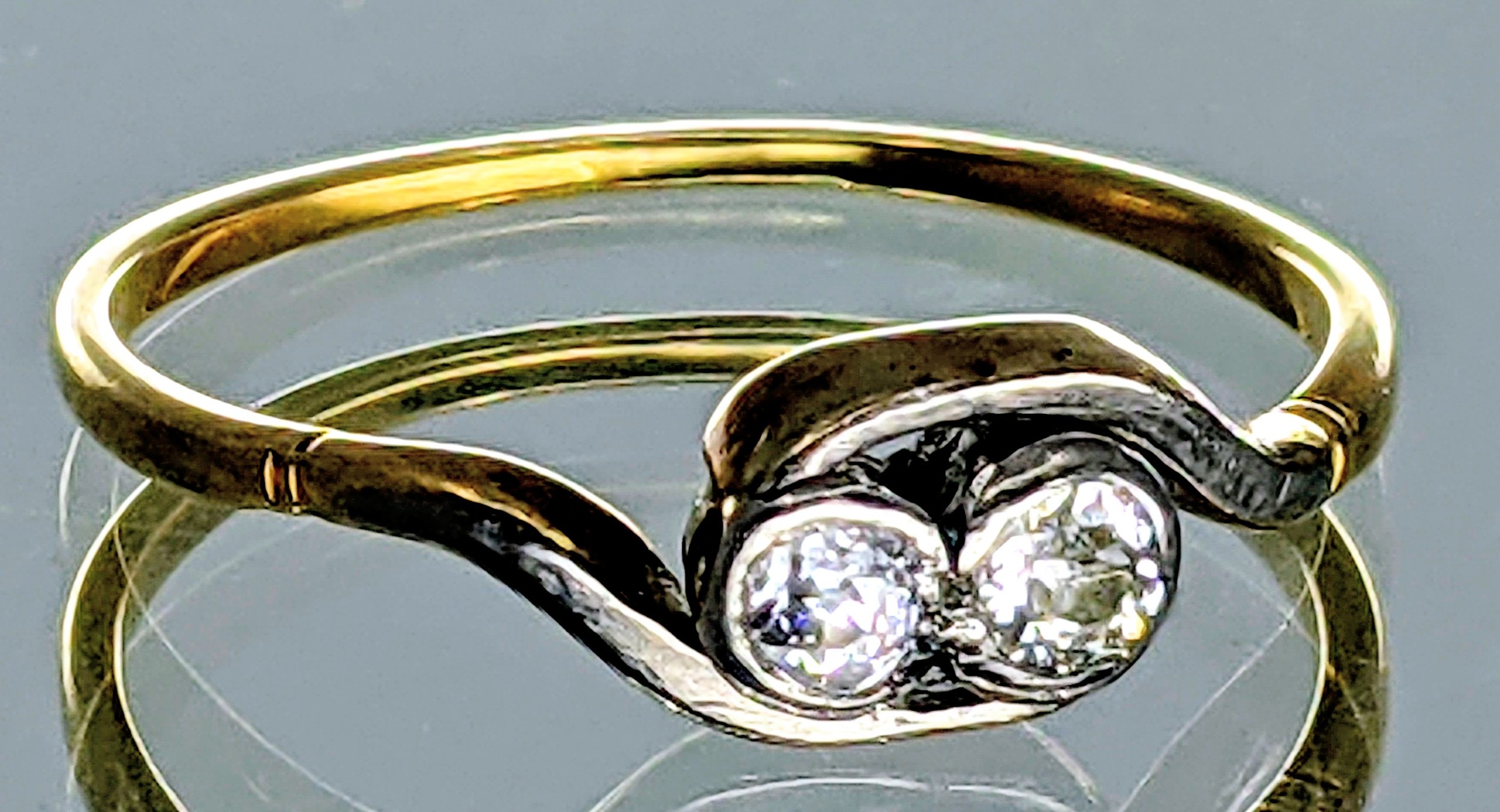 set with two melee old european cut diamonds, approx. 1.6g gross